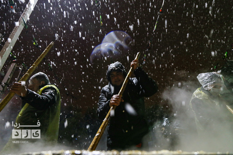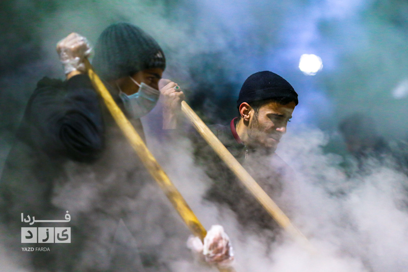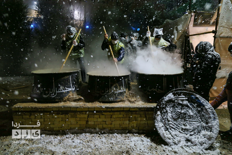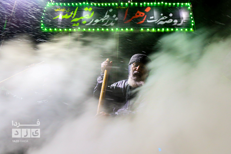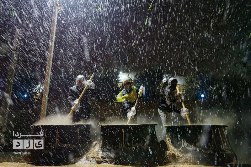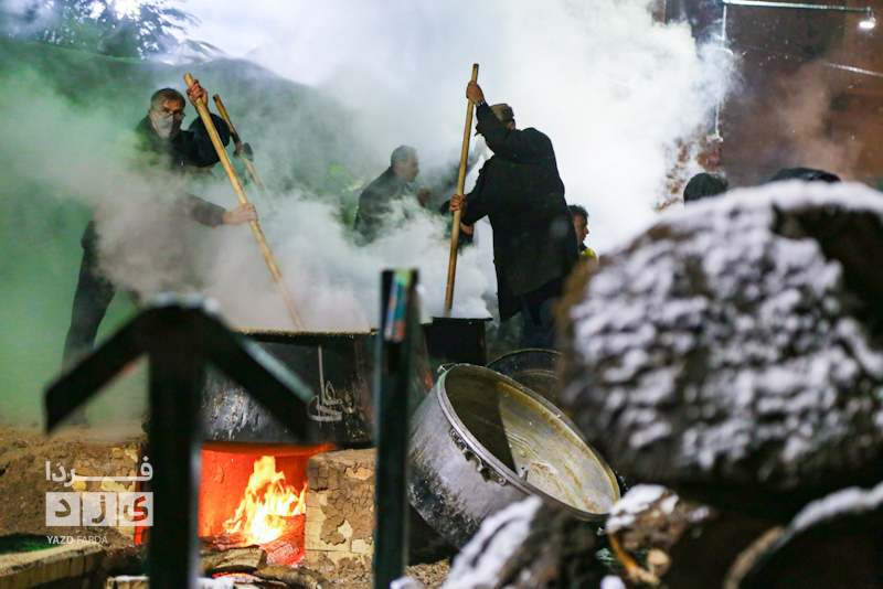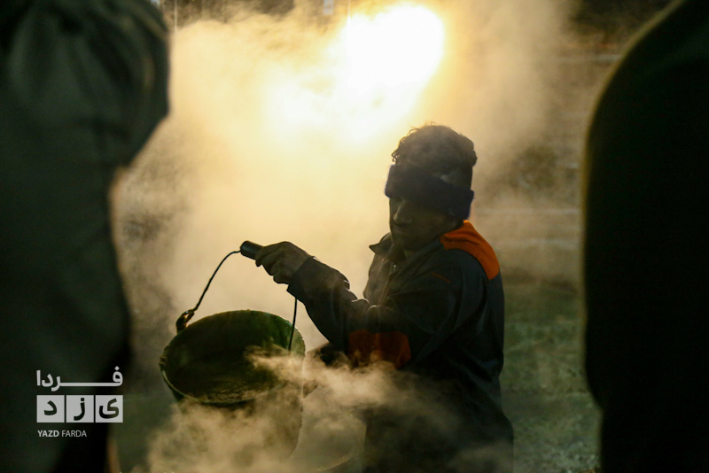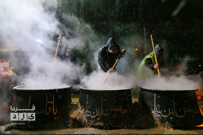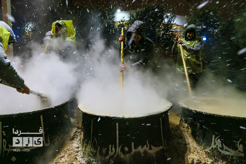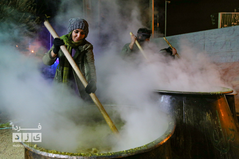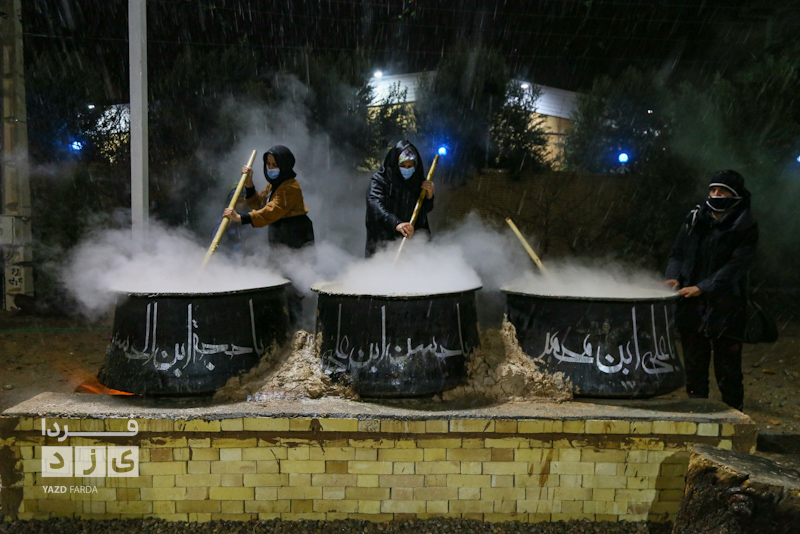 گزارش تصویری یزدفردا: مراسم روضه خوانی و عزاداری شهادت حضرت فاطمه زهرا(س) همراه با آیین کمچه زنی آش تبرکی در شهرستان تفت.