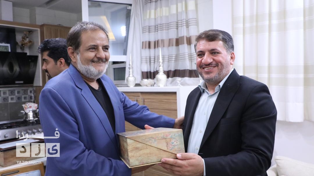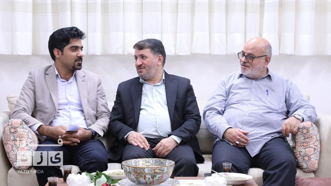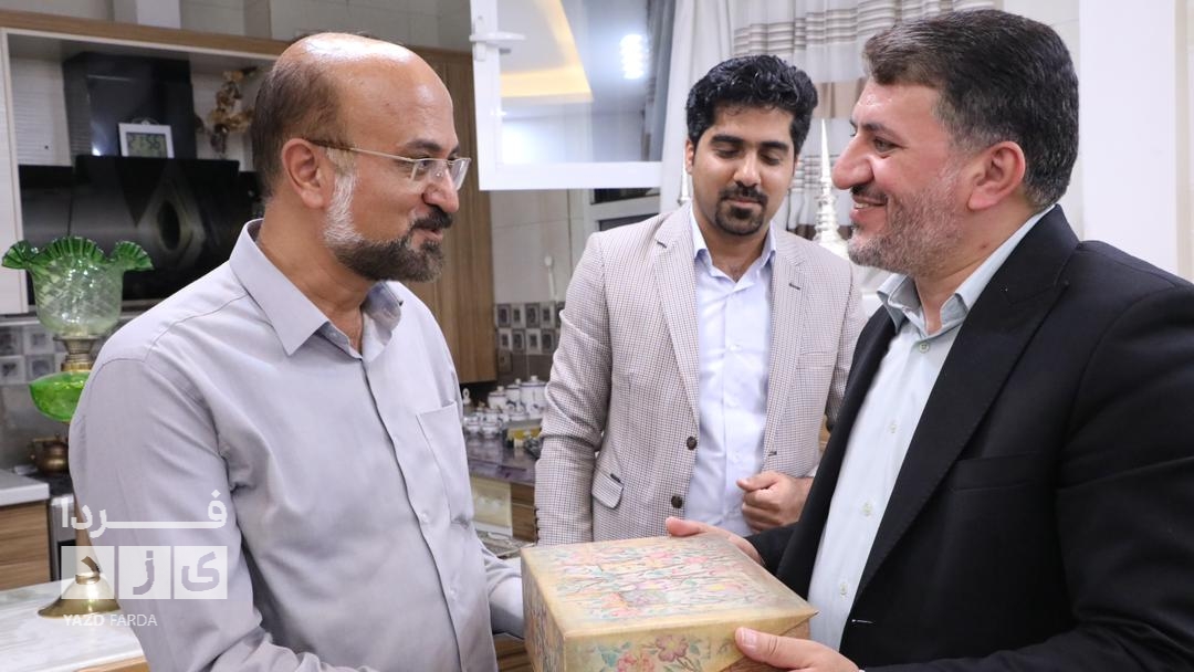 حضور استاندار یزد و هیئت همراه در منزل محمدصادق احمدنیا به مناسب روز خبرنگار