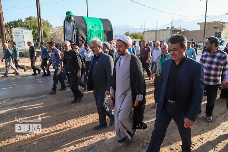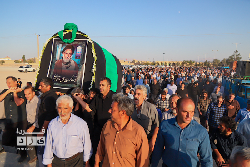 یزدفردا: عصر امروز دوشنبه پیکر مطهر فقیه عالی قدر سید جلیل صدر طباطبایی با حضور اقشار مردم و روحانیون در شهر مهریز از مسجد سیدالشهدا(ع) به طرف میادین شهرداری، شهدای گمنام، پرستار، فاطمیه و حسینیه باغ بهار و از آنجا به سمت حسینیه وحدت بر روی دستان تشییع و به خاک سپرده شد.