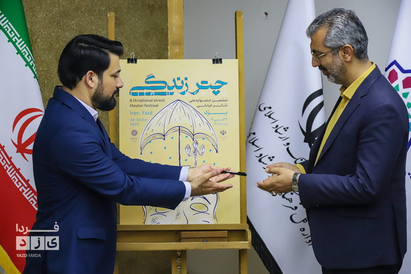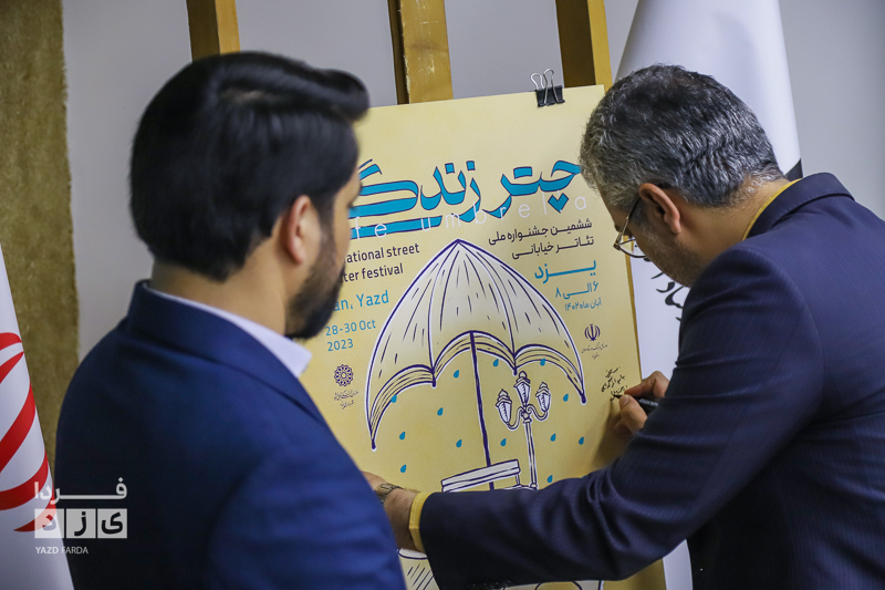 به مناسبت آغاز ششمین جشنواره ملی تئاتر «چتر زندگی» نشست خبری «احسان عابدی» مدیر کل فرهنگ و ارشاد اسلامی استان و «مصطفی زارعزاده» سرپرست سازمان فرهنگی اجتماعی ورزشی شهرداری یزد شنبه هفت آبان ماه با حضور خبرنگاران و اصحاب رسانه برگزار شد.