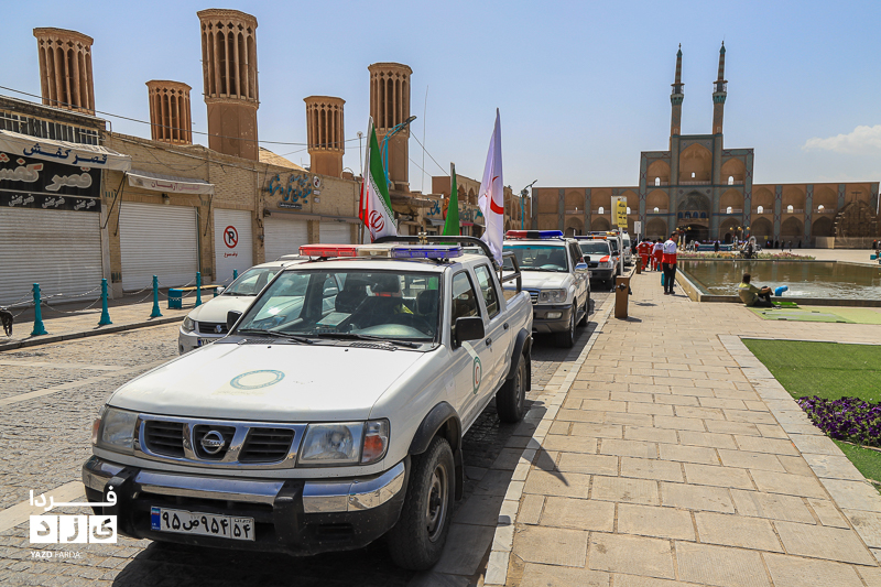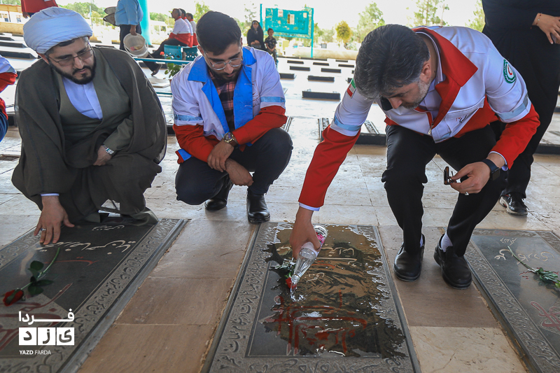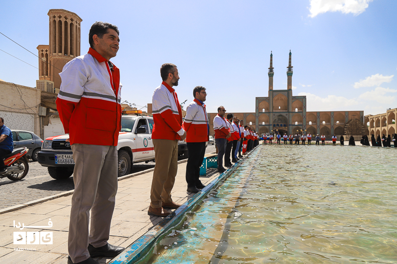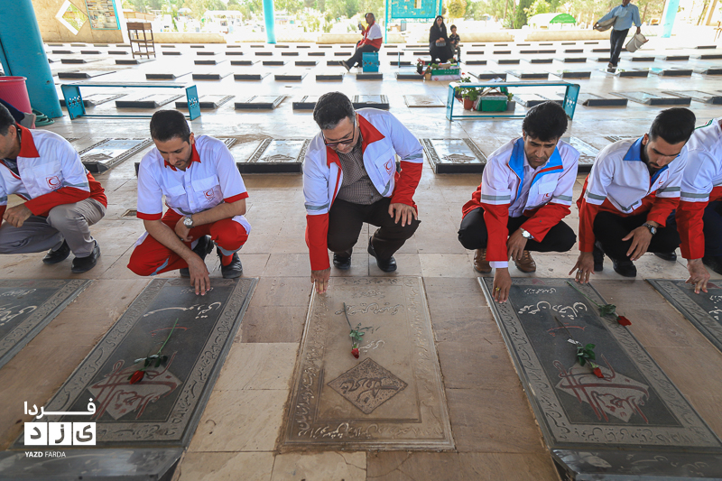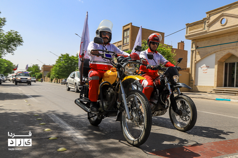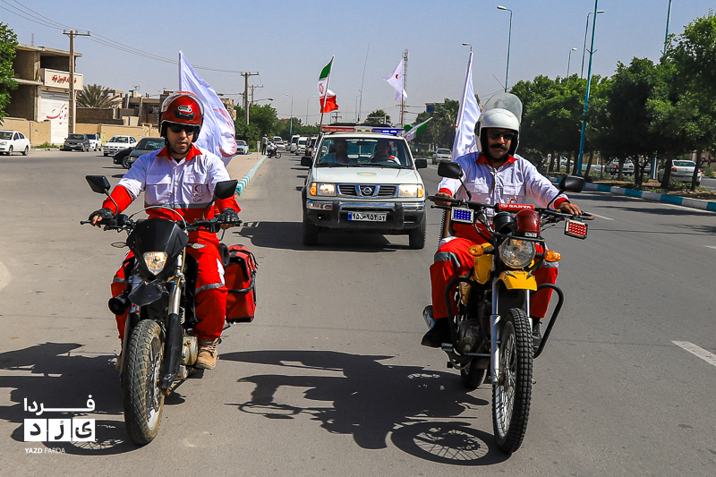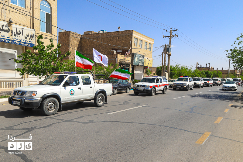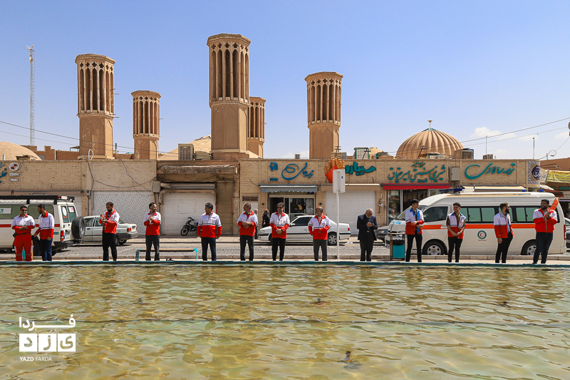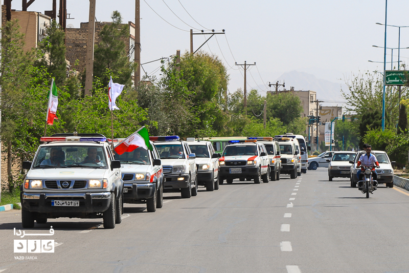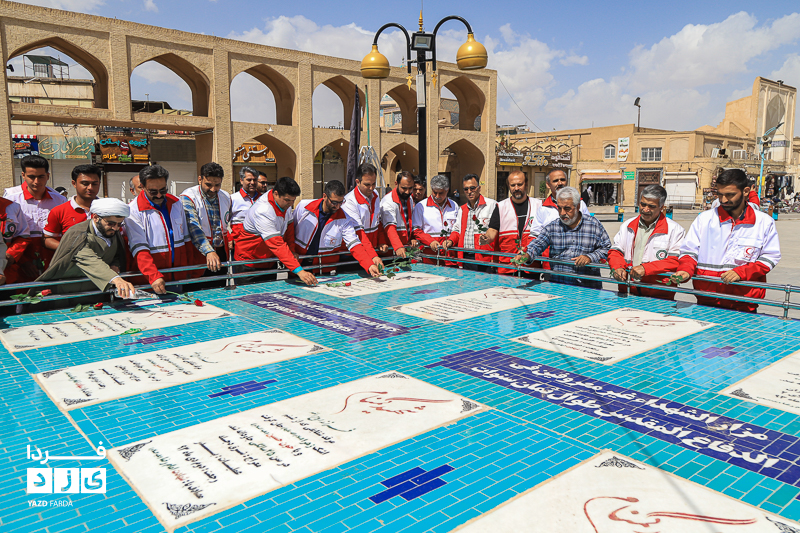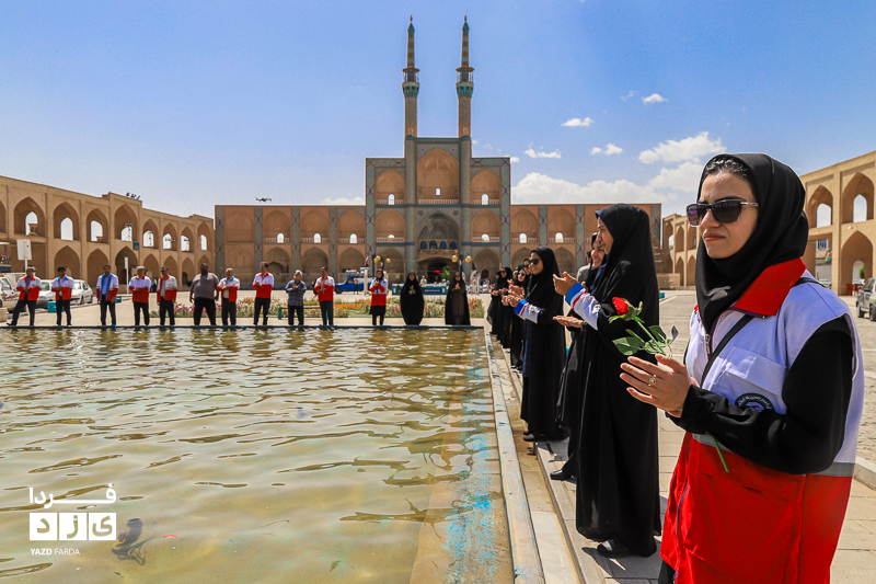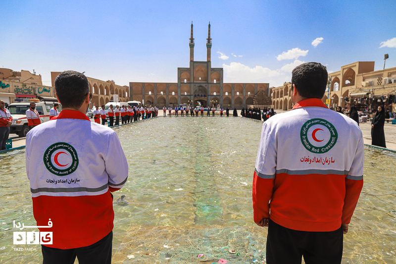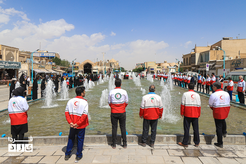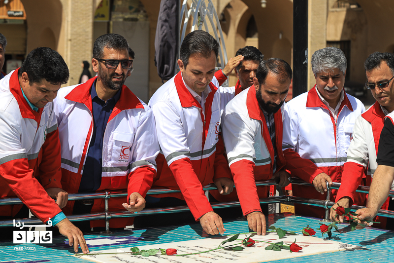 مراسم گرامیداشت هفته هلال احمر، دوشنبه ۱۸ اردیبهشت ماه ابتدا با تجدید میثاق با شهدا و غبارروبی گلزار شهدا، رژه خودرویی از خلدبرین تا امیرچخماق و در انتها تشکیل زنجیره صلح و دوستی در میدان امیرچخماق با حضور پرشور داوطلبان، امدادگران در یزد برگزار شد.