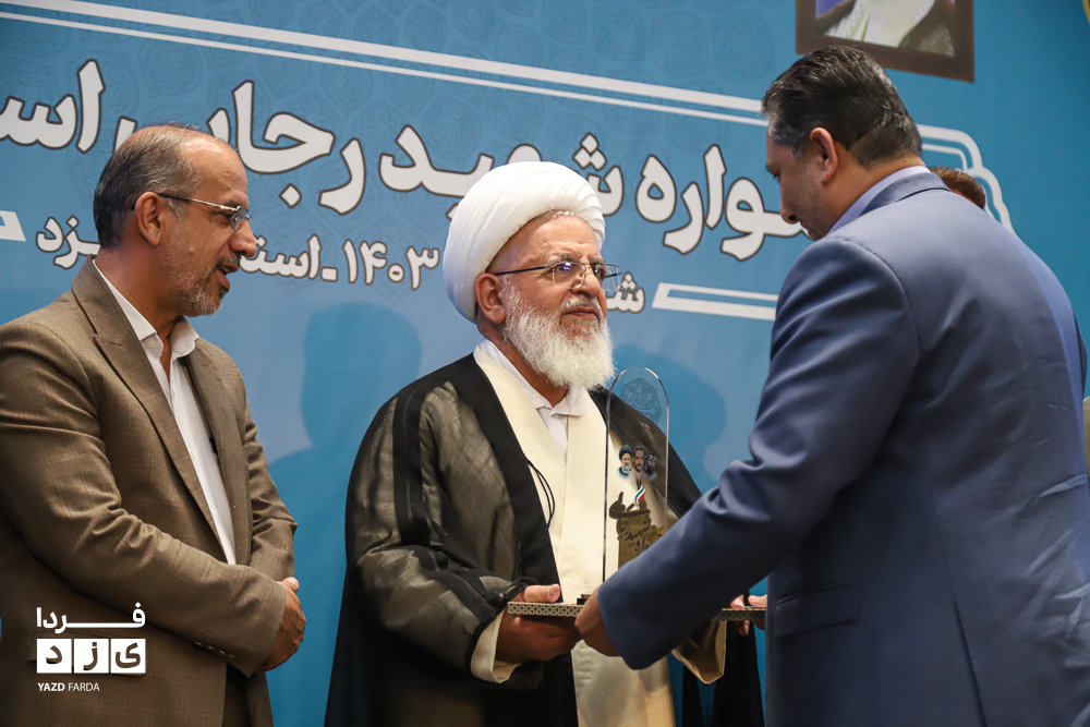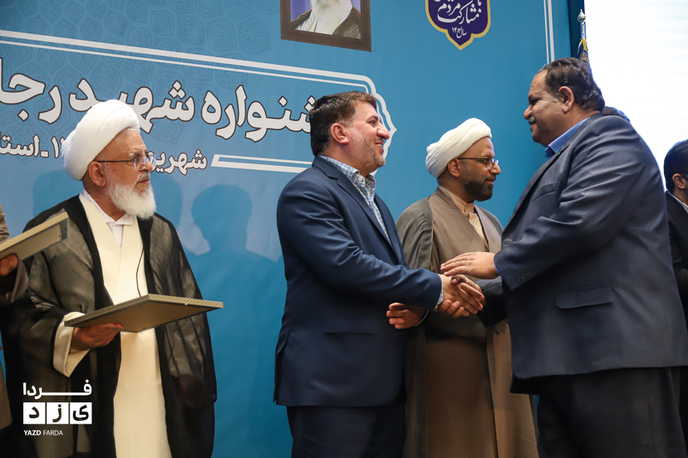 جشنواره شهید رجایی سال ١۴٠٣ استان یزد با حضور نماینده ولی فقیه در استان و امام جمعه یزد، استاندار، نماینده مردم تفت و میبد در مجلس شورای اسلامی و جمعی از مدیران و مسئولین استان با معرفی و تجلیل از دستگاه های اجرایی برتر؛ براساس ارزیابی عملکرد سال صبح امروز چهارشنبه ٧ شهریور ماه در سالن شهید منتظر قائم استانداری برگزار شد.