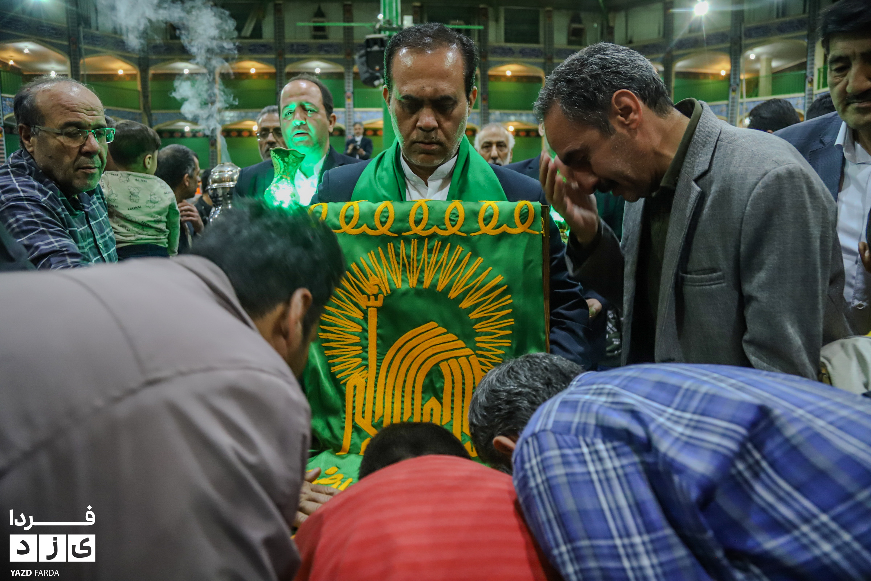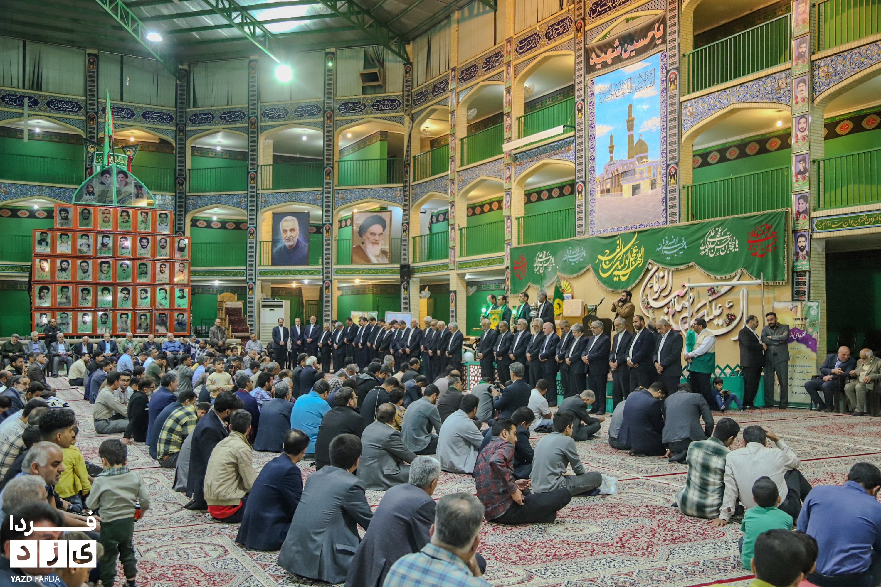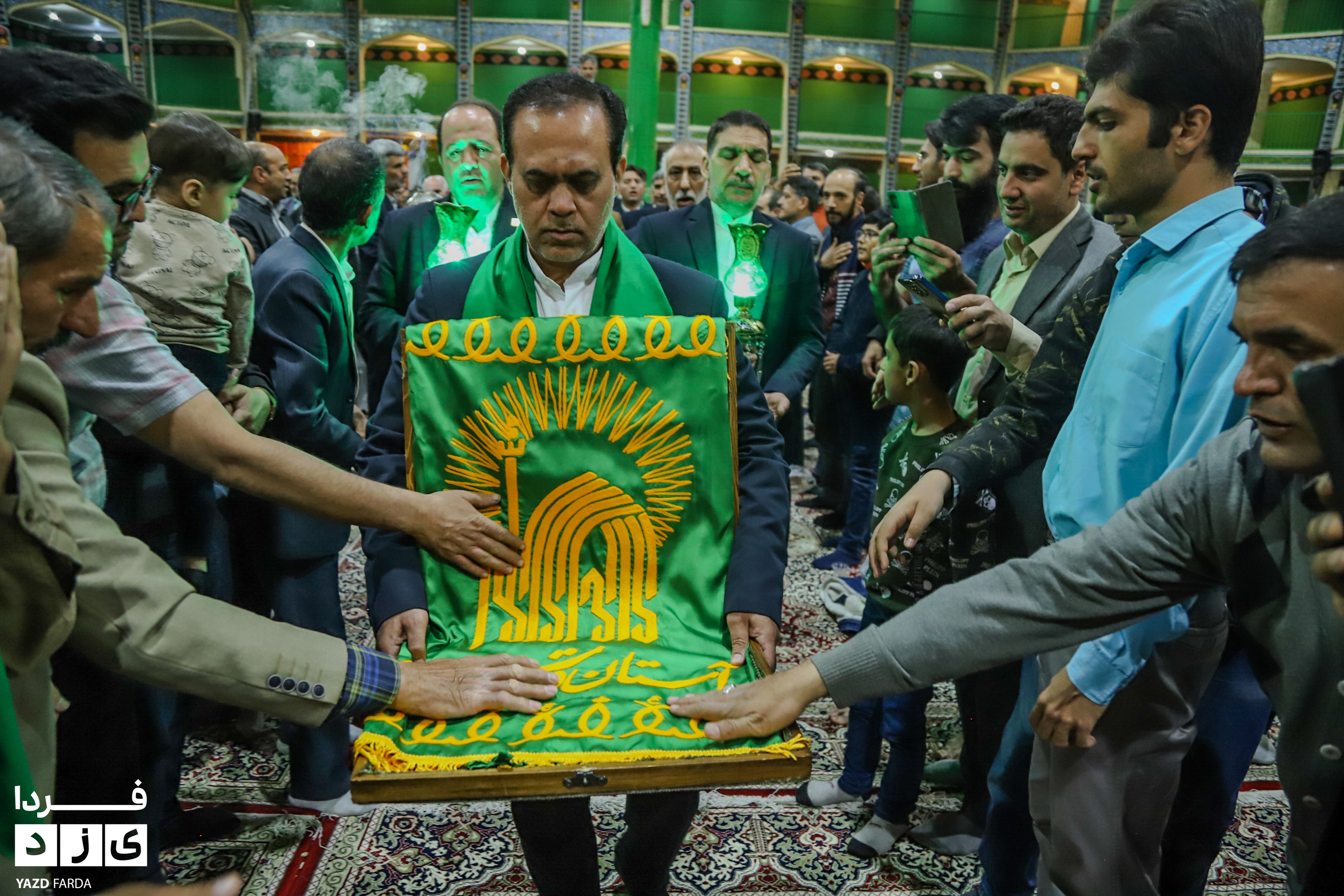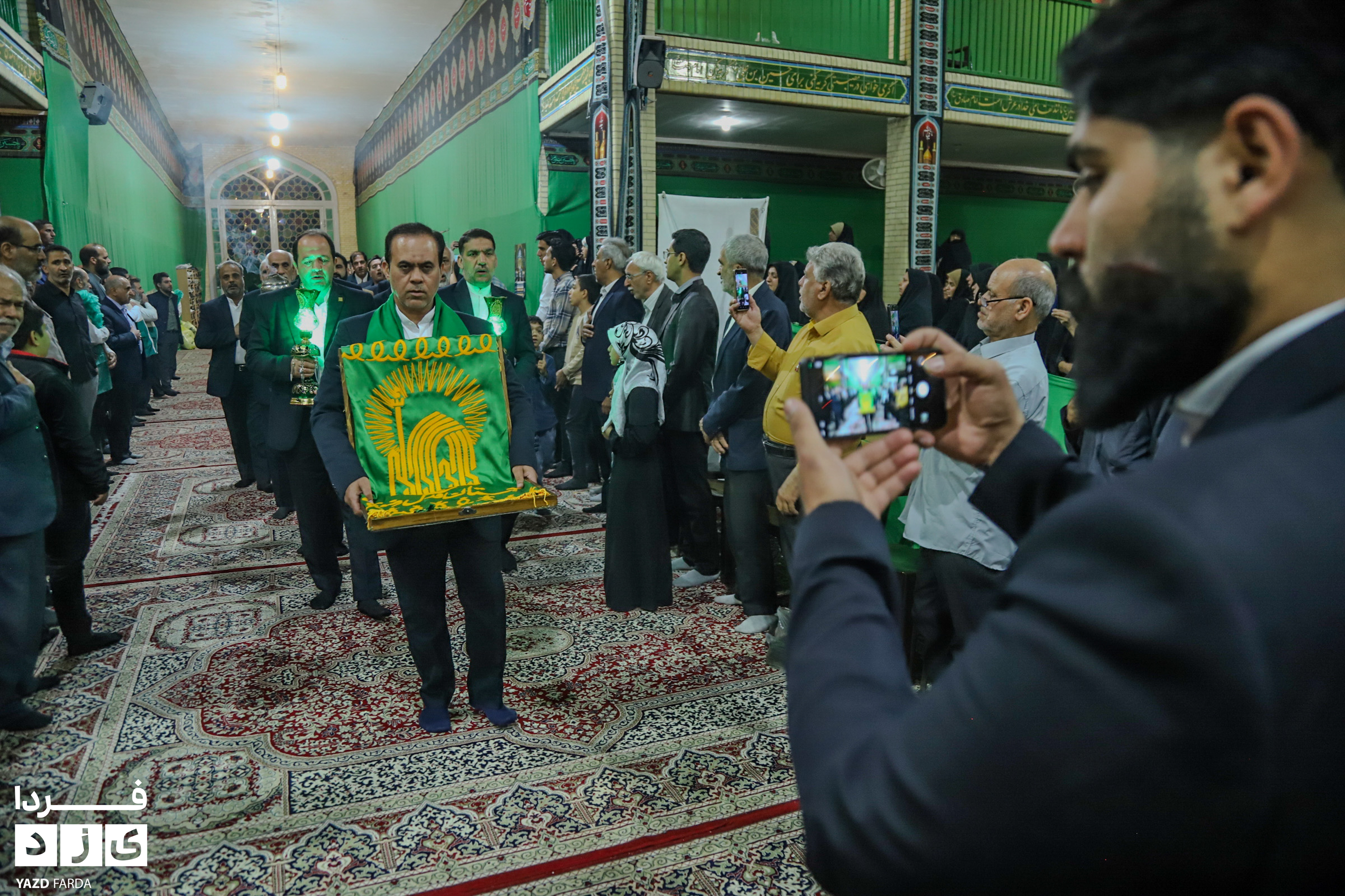 مراسم معنوی خادمیاران رضوی شهرستان یزد، با حضور آیتالله سیدمحمدکاظم مدرسی و نوای دلنشین مداح برجسته کشوری حاج مهدی منصوری، و همراه با پرچم متبرک حرم مطهر امام رضا (ع)، برگزار شد.