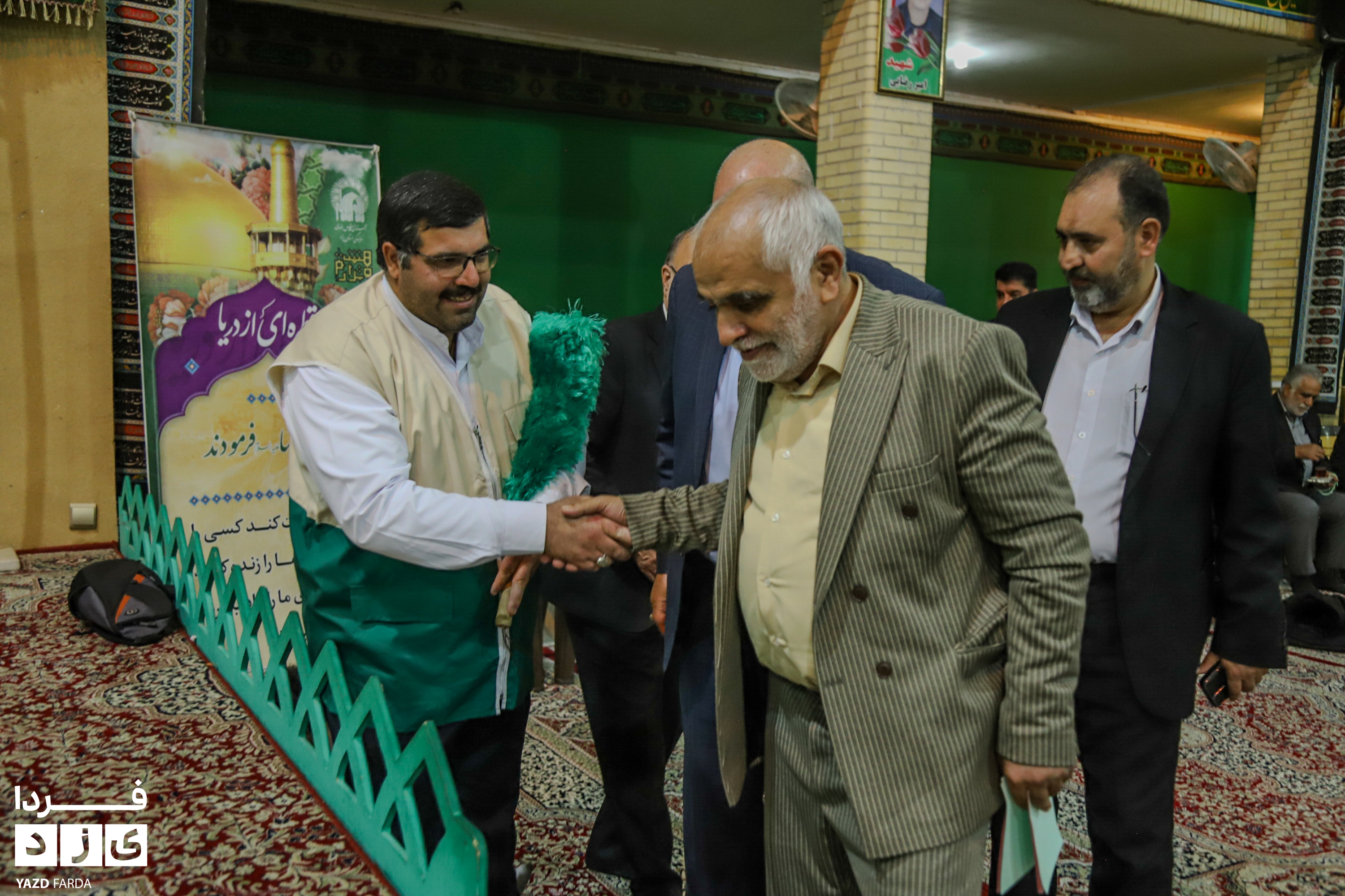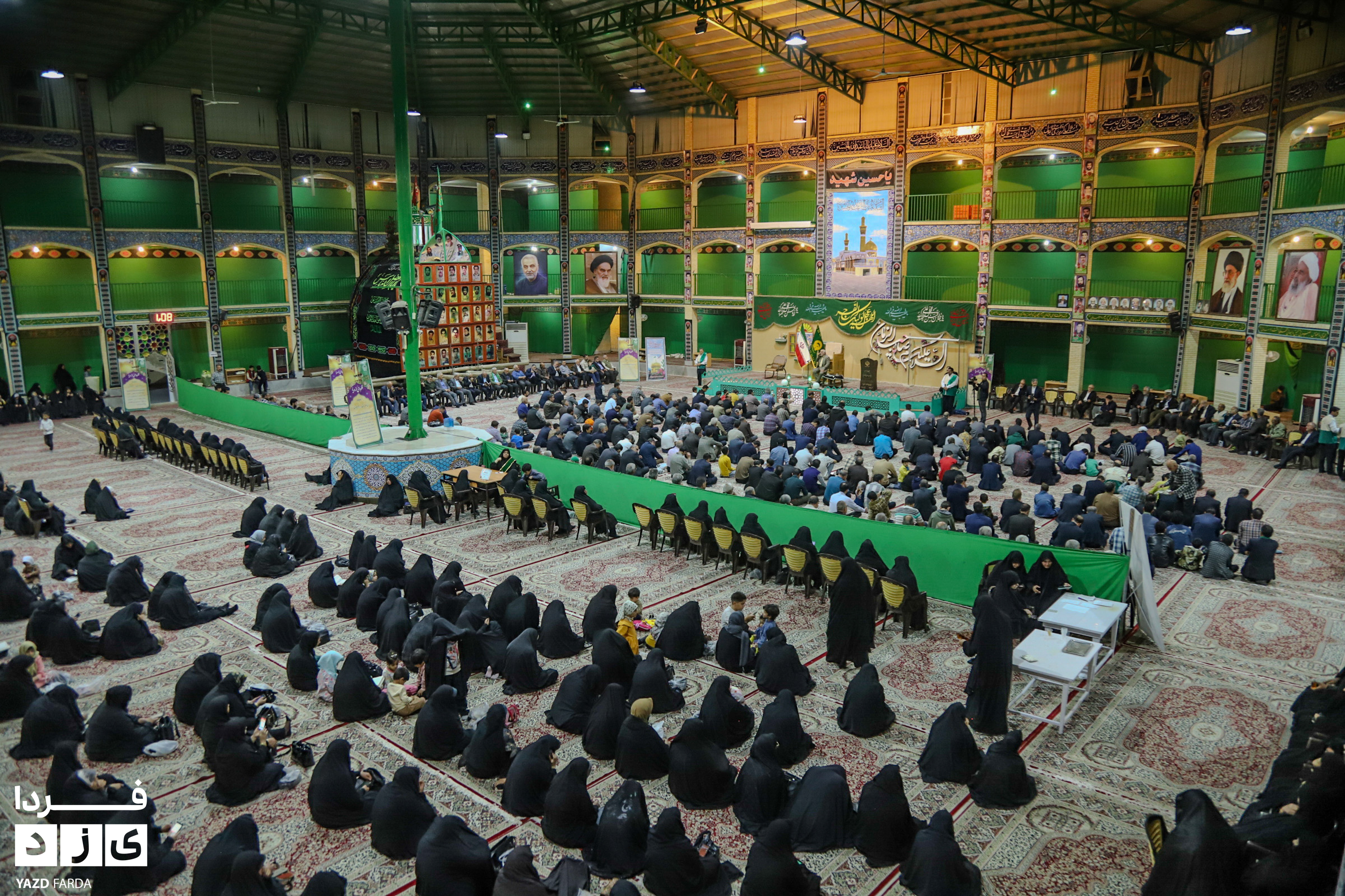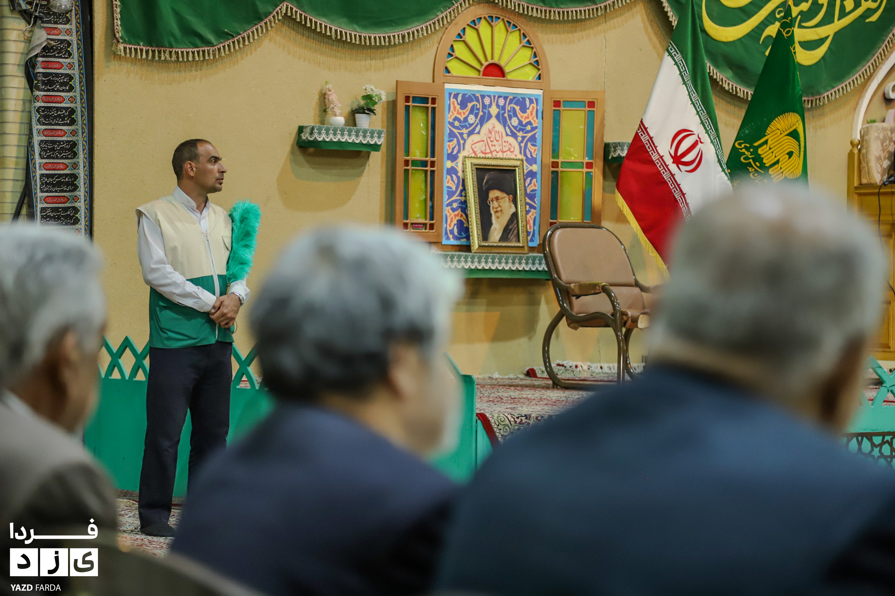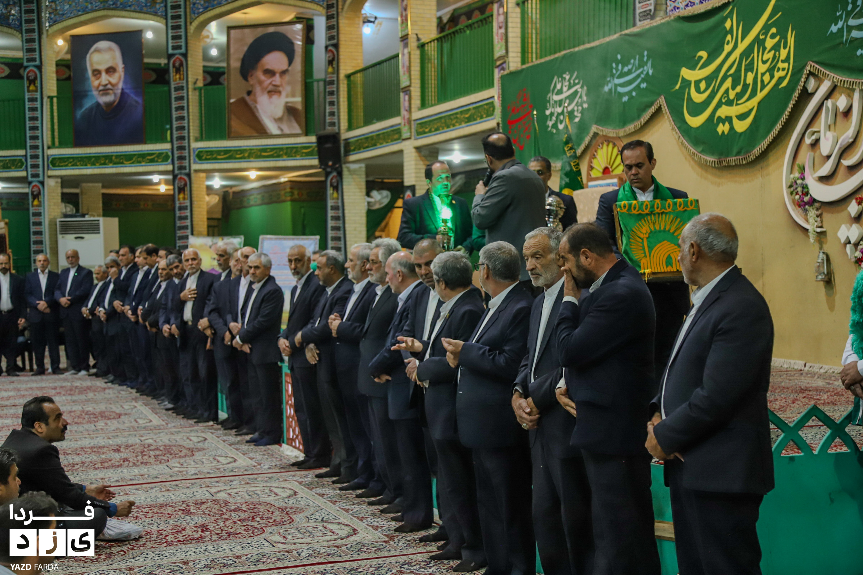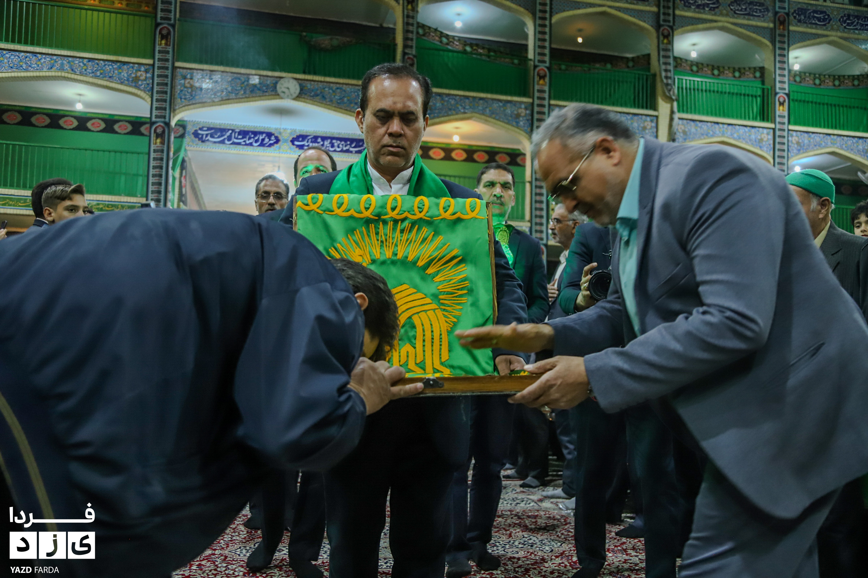 مراسم معنوی خادمیاران رضوی شهرستان یزد، با حضور آیتالله سیدمحمدکاظم مدرسی و نوای دلنشین مداح برجسته کشوری حاج مهدی منصوری، و همراه با پرچم متبرک حرم مطهر امام رضا (ع)، برگزار شد.