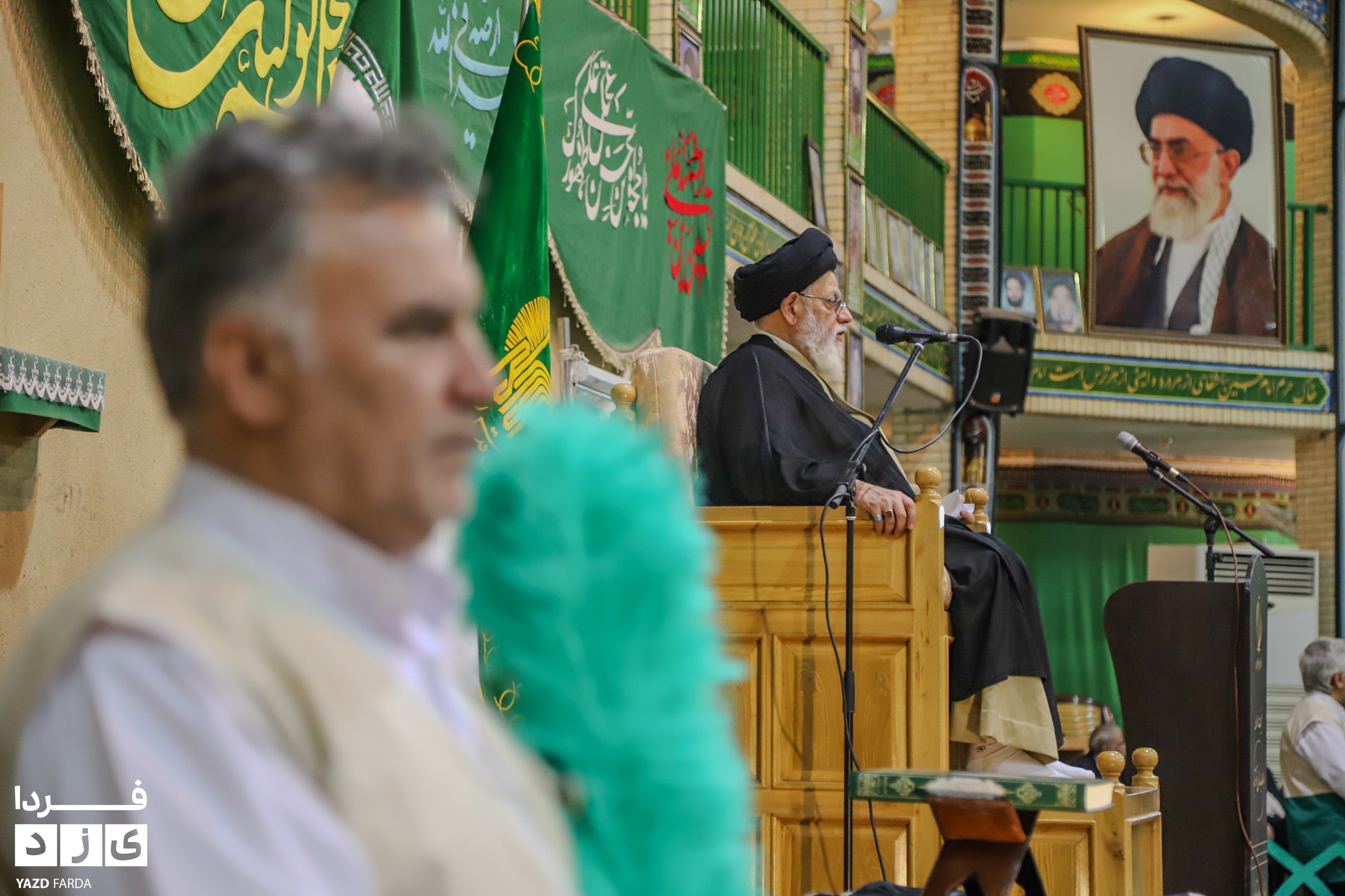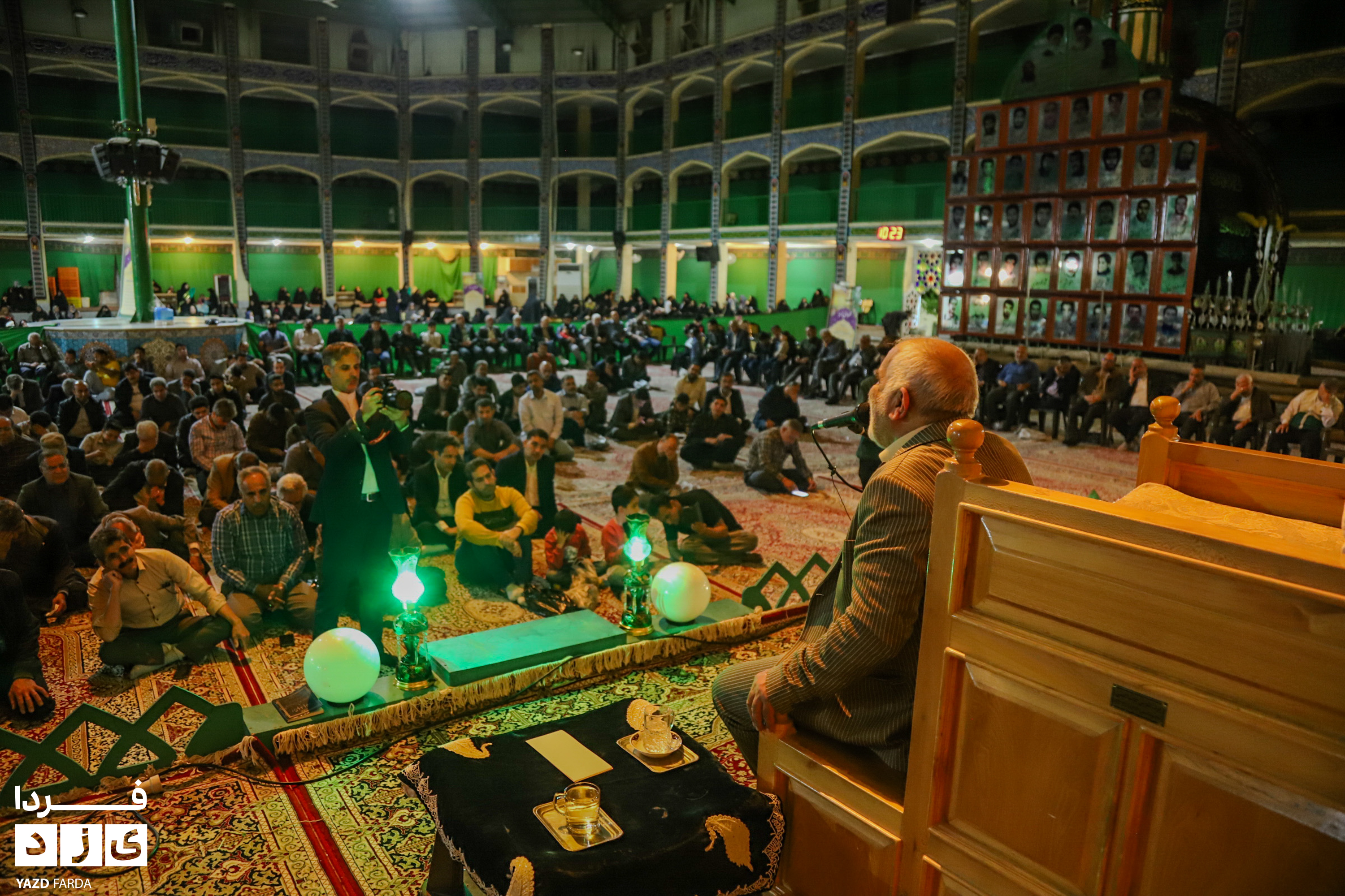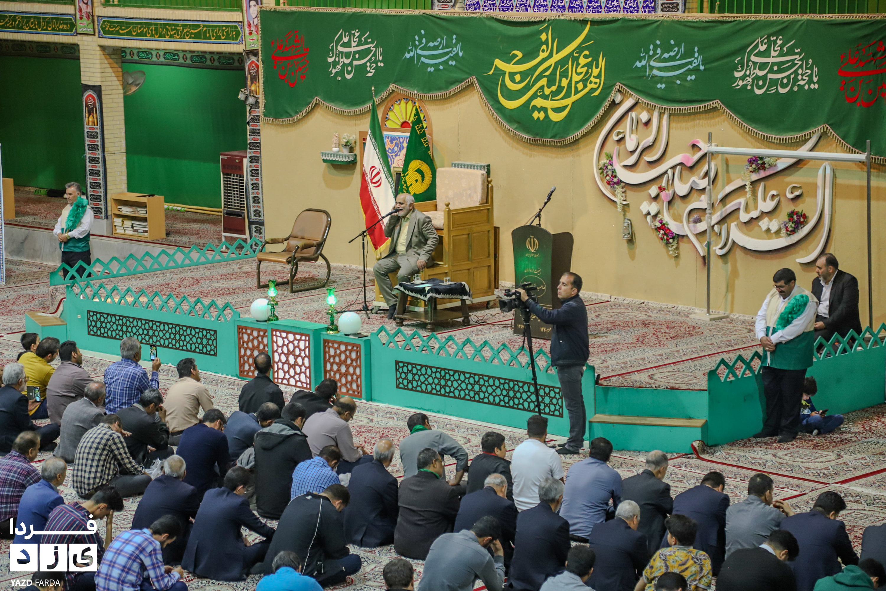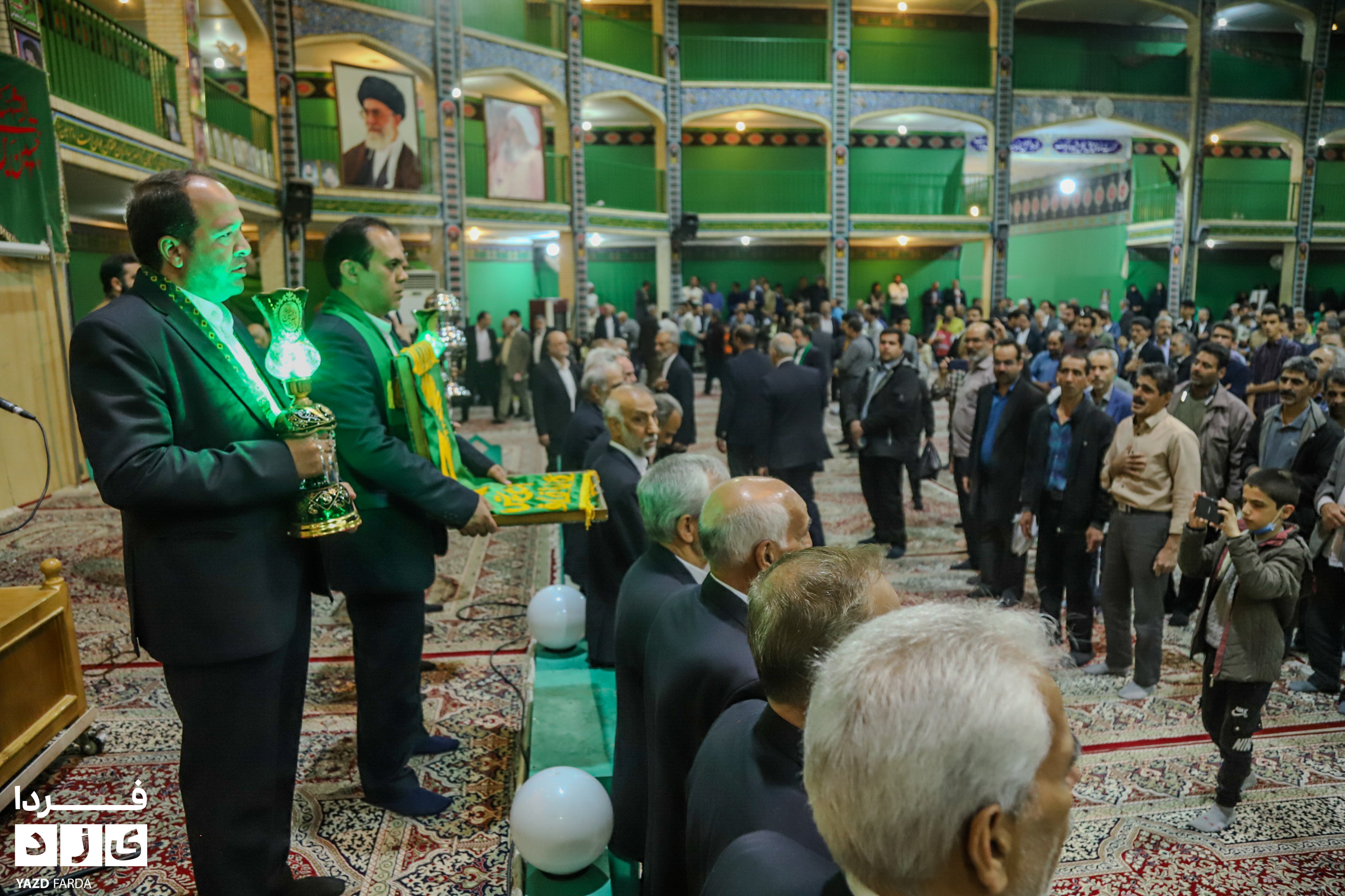 مراسم معنوی خادمیاران رضوی شهرستان یزد، با حضور آیتالله سیدمحمدکاظم مدرسی و نوای دلنشین مداح برجسته کشوری حاج مهدی منصوری، و همراه با پرچم متبرک حرم مطهر امام رضا (ع)، برگزار شد.