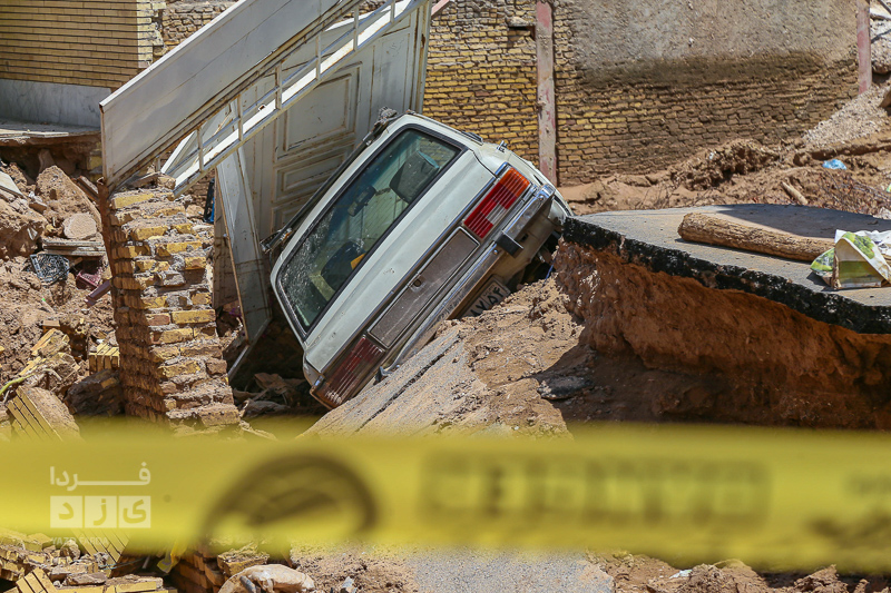 تخریب منزل مسکونی و فرونشست زمین بر اثر سیل اخیر
