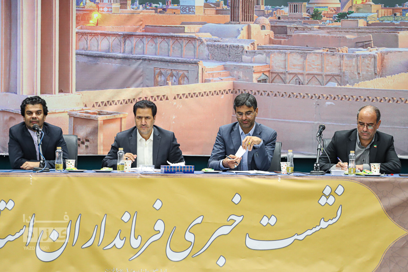 به مناسبت هفته دولت صبح امروز یکشنبه سیام مرداد ماه نشست خبری "محمد علی صمیمی" فرماندار بافق، "علیرضا تیموری" فرماندار بهاباد و "محمد دهشیری" فرماندار تفت با حضور خبرنگاران در سالن شهید منتظرقائم استانداری یزد برگزار شد.