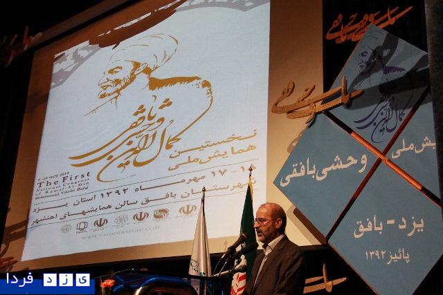 مسعود میرجلیلی عکاس و خبرنگار یزدفردا؛ نخستين همايش ملي وحشي بافقي با حضور جمعي از مسوولان كشوري و استاني در محل سالن همايشهاي آهن شهر بافق در حال برگزاري است.