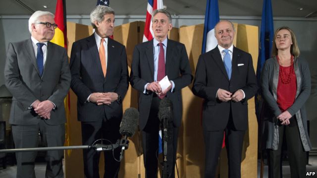 جان کری، وزیر خارجه آمریکا، فیلیپ هاموند، فرانک والتر اشتانمایر، ژان مارک آیرو، وزیران بریتانیا، آلمان و فرانسه و نیز فدریکا موگرینی، ۳۰ اردیبهشتماه در پی دیداری در بروکسل، بیانیهای مشترک صادر کردند.