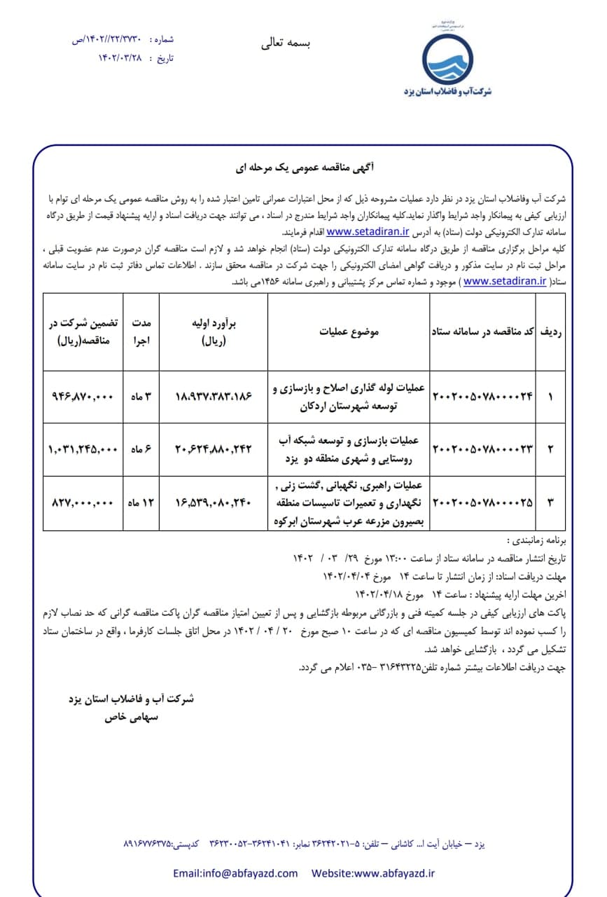 اصلاح شبکه اردکان و منطقه دو یزد / تعمیر و نگهداری بصیرون