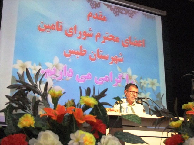 فرمانده انتظامي استان خراسان جنوبي در اين مراسم، تأمین امنیت اجتماعی را یکی از مهمترین وظایف نیروی انتظامی دانست و اظهار داشت: نیروی انتظامی جمهوری اسلامی ایران دارای وظایف متعدد و متنوعی است که عمل به برخی از این وظایف تنها از طریق تعامل و مشارکت سایر دستگاهها و عموم مردم امکانپذیر است.