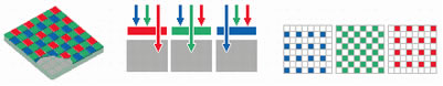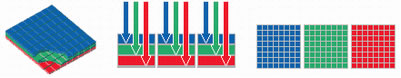 در دوربين هاي ديجيتال معمولي فيلترهاي رنگي با الگوي موزائيکي بر روي يک لايه تکي از حسگرهاي نوري قرار گرفته اند. فيلترها فقط به يک طول موج از نور – قرمز، سبز يا آبي – اجازه عبور و رسيدن به پيکسل سنسور را داده و فقط يک رنگ در هر نقطه ثبت مي گردد. در نتيجه سنسور تصوير فقط 50% رنگ سبز و 25% از هر کدام از رنگهاي قرمز و آبي را ثبت مي نمايد.