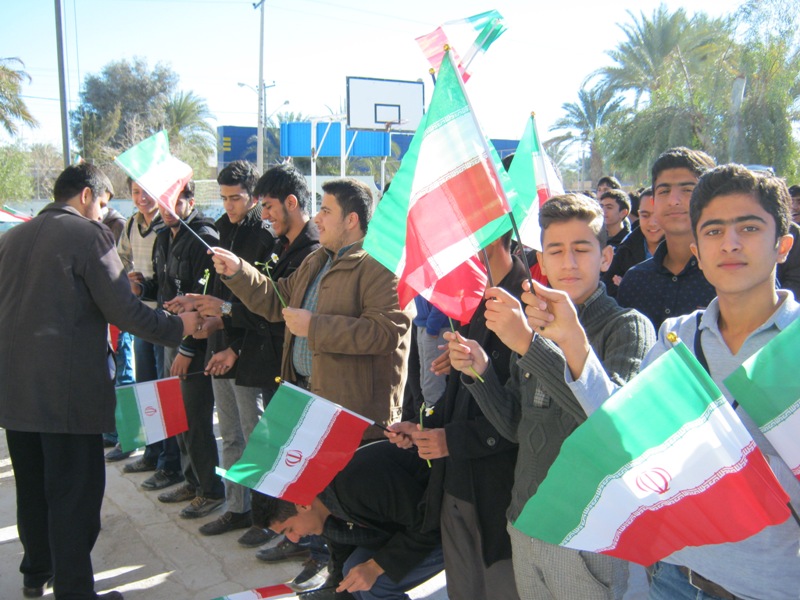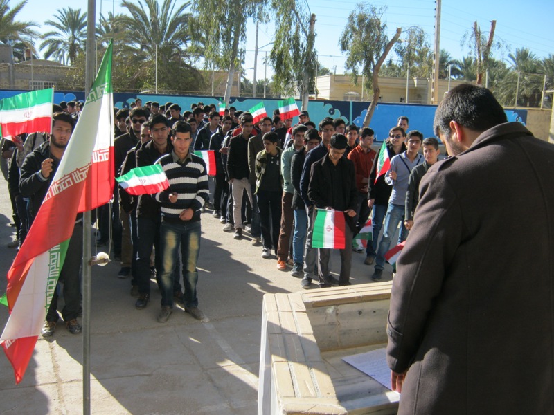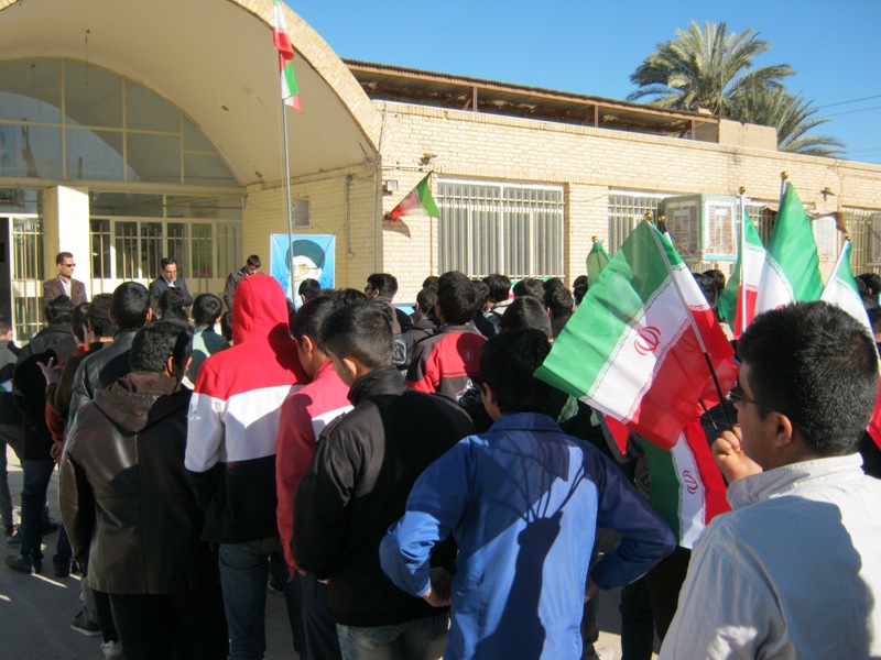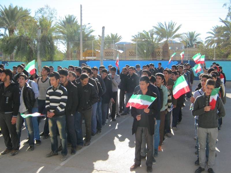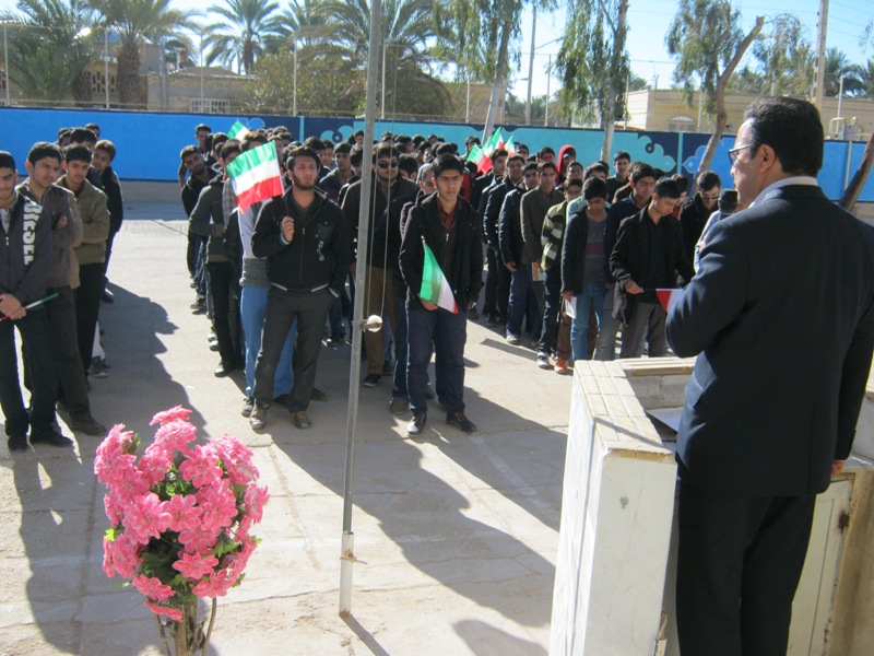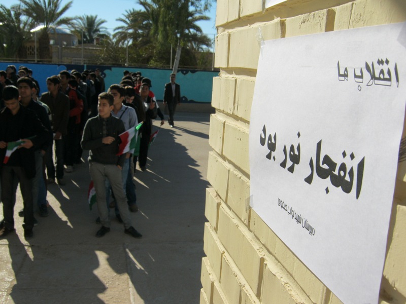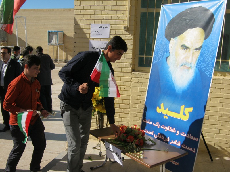 به صدای در آمدن زنگ انقلاب در دبیرستان شهید نواب صفوی طبس با حضور دانش آموزان.