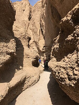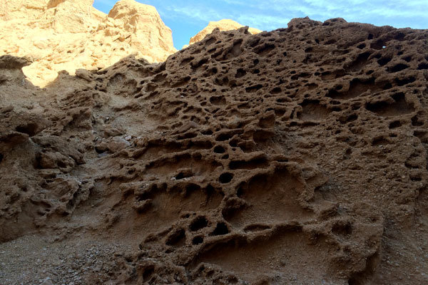 آب و باد با همراهی یکدیگر، نقشهایی بر دیوارههای دره پدید آوردهاند که وقتی به آنها مینگری، گویی یک انسان هنرمند با حوصله و صبر، روزها در این تنگنای بیابانی ایستاده و آنها را با دستانش کنده است.