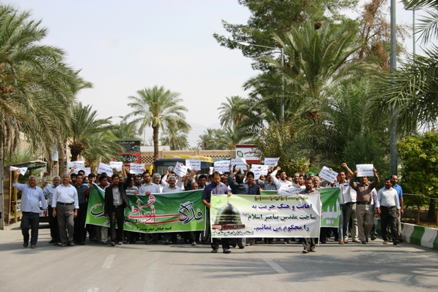 طبس- سیدابوالفضل حقانی: جمعي از بازاريان شهرستان طبس صبح امروز با تعطيلي كسب و كار خود و تجمع در میدان آیت الله واعظ طبسی این شهر، هتك حرمت به ساحت قدسي رسولالله(ص) را محكوم كردند.