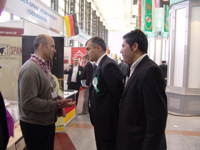 کیومرث عظیمی و رسول عراقی در حاشیه افتتاح نمایشگاه بین المللی صنعت اسب در عشق آباد در دیداربا کنسول ترکمنستان در مشهد، سفیر ترکمنستان در ایران، معاون وزارت اسب ترکمنستان و اقای گلپایگانی سفیر ایران در ترکمنستان راه های همکاری مشترک و نزدیک شدن بخش خصوصی فعال دو کشور جهت توسعه صنعت اسب مورد بررسی قرار گرفت.