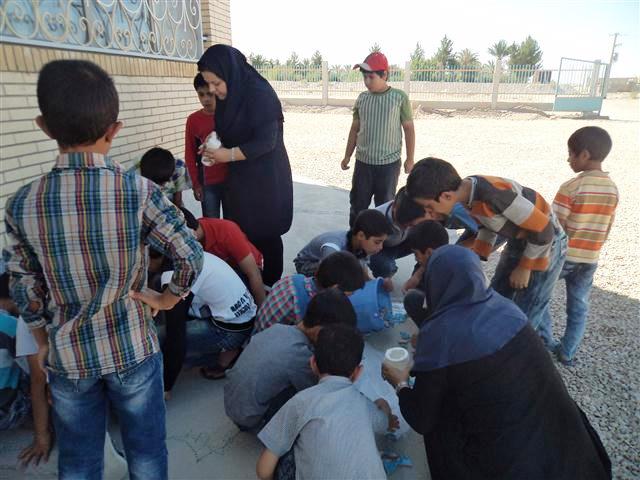 در این برنامه که به همت مربیان این مرکز تدارک دیده شده بود، ابتدا این حادثه دلخراش برای کودکان و نوجوانان تشریح شد سپس اعضا با استفاده از خرده کاشی های رنگی نقشه ایران را در فضای بیرون مرکز رسم کردند.