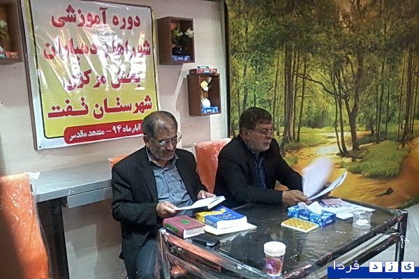 به گزارش واحد دریافت خبر یزدفردا"در اين برنامه آموزشي كه با حضور مدير كل امور روستايي استانداري يزد و بخشدار مركزي تفت برگزار شد، هر شب راس ساعت 20:30 جلسات آموزشي در محل تجمعات هتل تشكيل و موارد آموزشي لازم به دهياران ارائه گرديد.