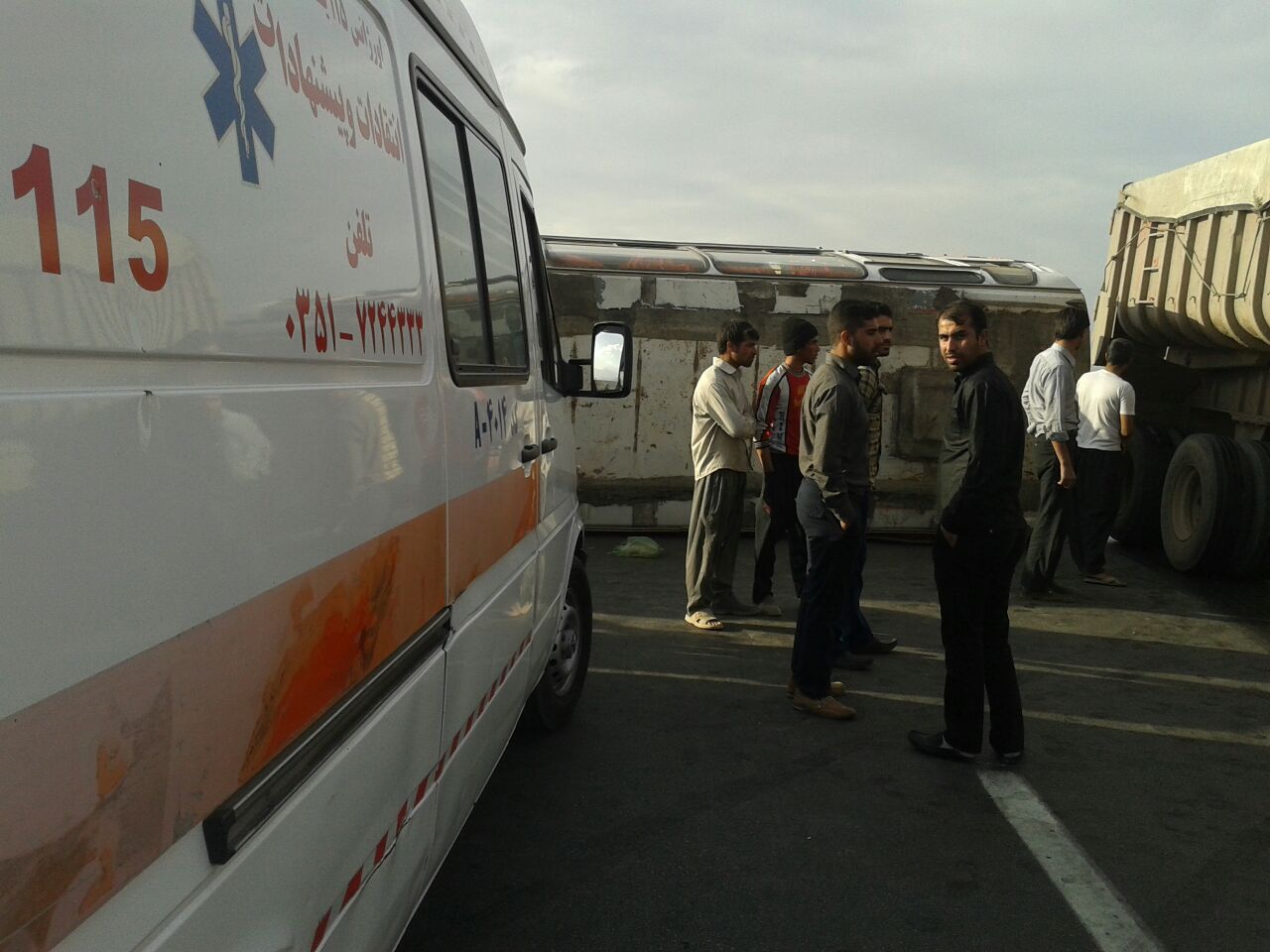 این حادثه در ساعت 15:50 امروز چهارشنبه 12 اسفند ماه در جاده کمربندی یزد نزدیک پایانه بار اتفاق افتاد که علت آن برخورد تریلر با اتوبوس و انحراف اتوبوس و واژگونی آن بود . این حادثه مجموعا 18 مصدوم داشت که با اعزام 5 واحد امدادی از پایگاههای اورژانس مناطق مرکز ، 4 ، 9 و زارچ به محل ، عملیات امداد و درمان مصدومان انجام شد . در این حادثه 13 نفر از مصدومان به بیمارستان منتقل شده و 5 نفر نیز در صحنه به صورت سرپایی مداوا شدند .