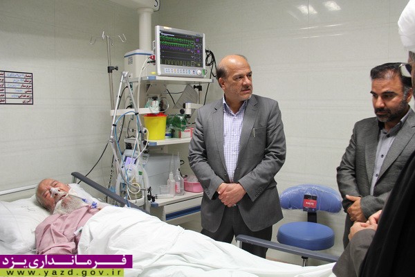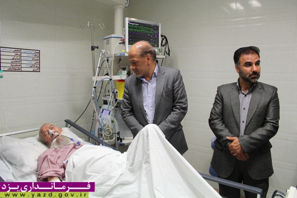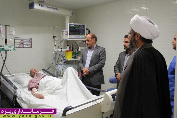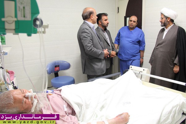 به گزارش روابط عمومي فرمانداري يزد، " محمود شاكري شمسي" فرماندار به همراه " سالاري" معاون سياسي و اجتماعي فرمانداري با حضور در بخش ICU بيمارستان حضرت سيد الشهداء (ع) يزد ضمن عيادت از آيت ا... ميرزا حسن ابوترابي از نزديك در جريان روند معالجه ي ايشان قرار گرفت.