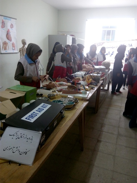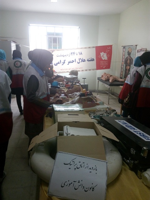 اعضا کانون دانش آموزی جمعیت هلال احمرابرکوه جهت آشنایی باوسایل امداد و کمک های اولیه و امداد و نجات از اتاق پراتیک این جمعیت بازدید نمودند