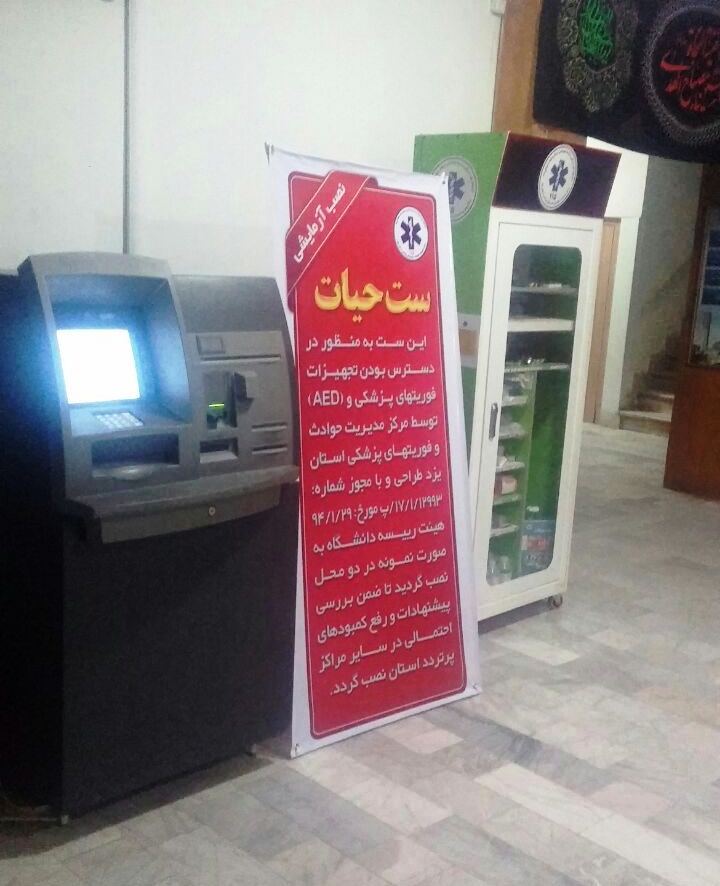 به گزرش واحد دریافت خبر یزدفردا:روز گذشته با حضور معاونین مرکز مدیریت حوادث و فوریتهای پزشکی استان یزد اولین ست حیات طراحی شده توسط کارشناسان این مرکز در ورودی سالن ساختمان ستاد مرکزی دانشگاه علوم پزشکی شهید صدوقی یزد رونمایی و راه اندازی شد .