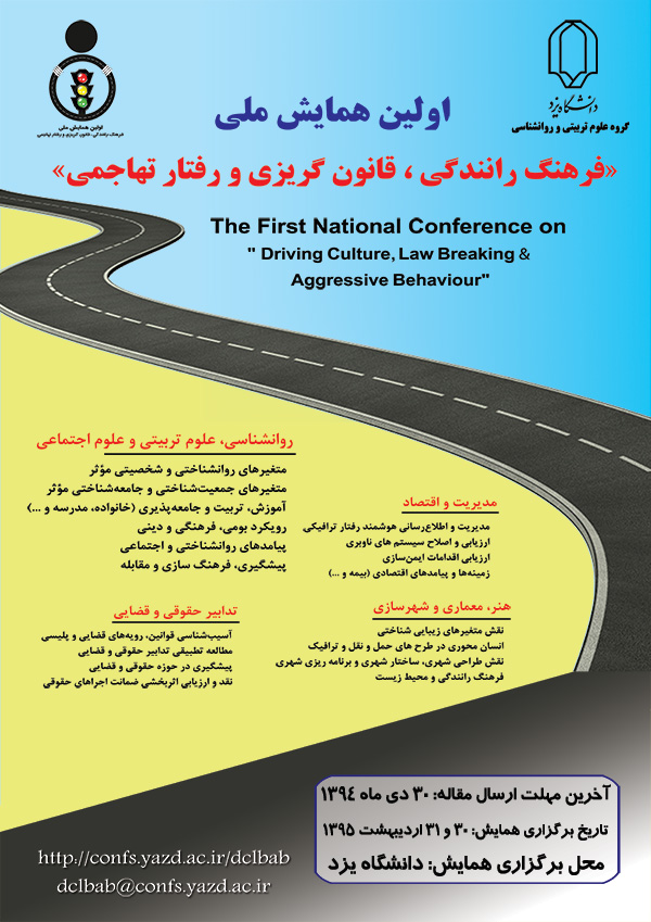 جباریفر افزود: برای برگزاری این همایش تاکنون اقدامات خوبی انجام شده و تفاهمنامههای زیادی با دستگاههای استان همچون دادگستری، شورای شهر یزد، شهرداری، جامعه مهندسان مشاور ایران و... داشتیم و اخیرا نیز بین رییس دانشگاه یزد و فرمانده نیروی انتظامی استان یزد تفاهمنامهای در حوزه تحقیقات در استان منعقد شد و علاقهمند و پیگیر هستیم در سطح ملی هم تحقیقات در جهت ارتقای فرهنگ رانندگی انجام شود که هماهنگی مسؤولان را میطلبد.