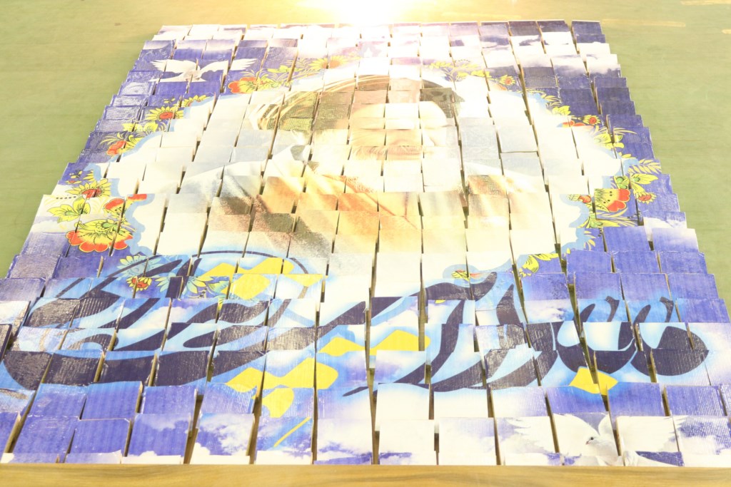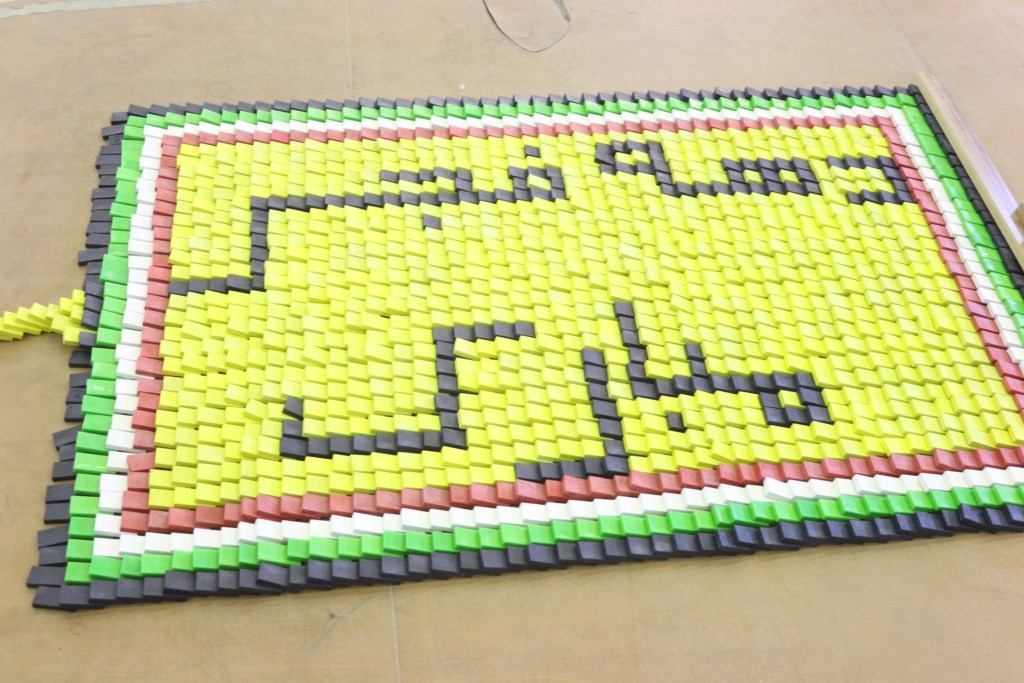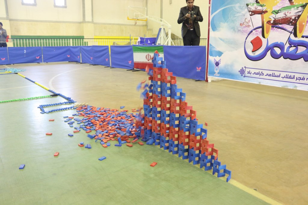 در پایان این مراسم ریزش قطعات دو مینو از طرحهای دهه مبارک فجر شامل تصویر سازی عکس حضرت امام خمینی (ره)، پرچم، نقشه ایران، چیدمان دیوارهای مختلف، تاپلینگ و برج ایجاد شد.