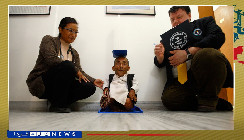 در حال اندازه گیری وزن و قد کوتاه ترین آدم دنیا