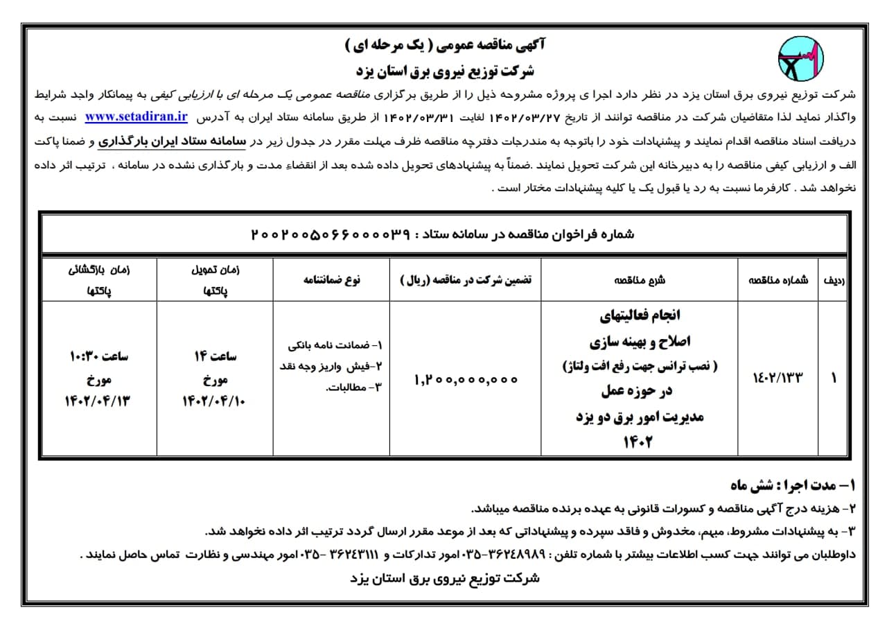 انجام فعالیتهای اصلاح و بهینه سازی -نصب ترانس جهت رفع افت ولتاژ- امور دو- 1402