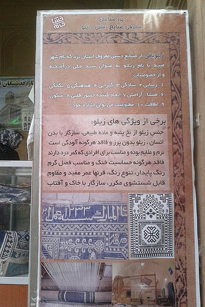 در غرفه ایجاد شده توسط انجمن فوق  بنرهای یزد شناسی و معرفی زیلو از صنایع دستی میبد و ترمه از صنایع دستی استان یزد،توزیع دی وی دی ، ارائه پوسترهای جاذبه های فرهنگی تاریخی و صنایع دستی استان یزد ، ارائه صنایع دستی استان به قیمت تولیدی صورت گرفت .