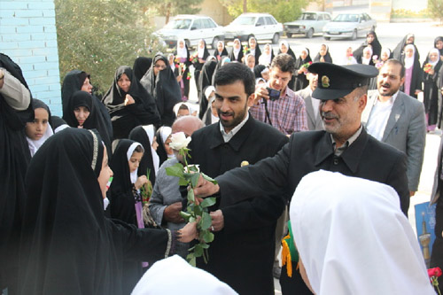 حضور خدام حرم رضوی در مدارس با استقبال با شکوه دانش آموزان و اعطای گل به خدام و معطر شدن فضا به ذکر صلوات همراه بوده است.