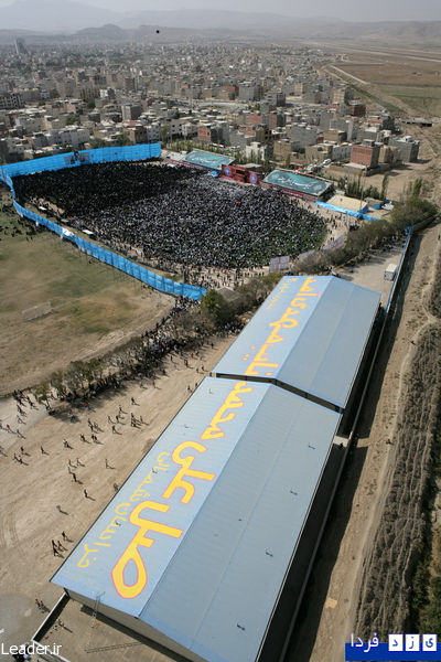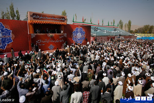 حضرت آیت الله خامنه ای پس از استقبال پرشکوه مردم که حدود دو ساعت به طول انجامید، وارد ورزشگاه تختی بجنورد شدند و مورد استقبال جمع دیگری از مردم قرار گرفتند که از ساعت ها قبل، در این ورزشگاه منتظر ورود رهبر انقلاب اسلامی بودند.
