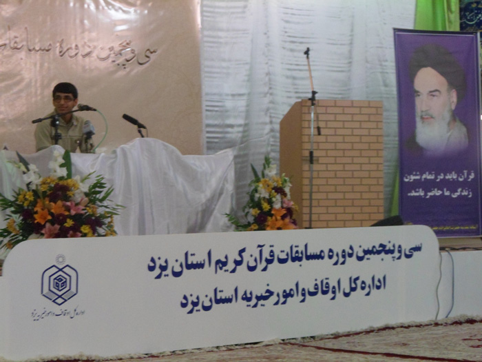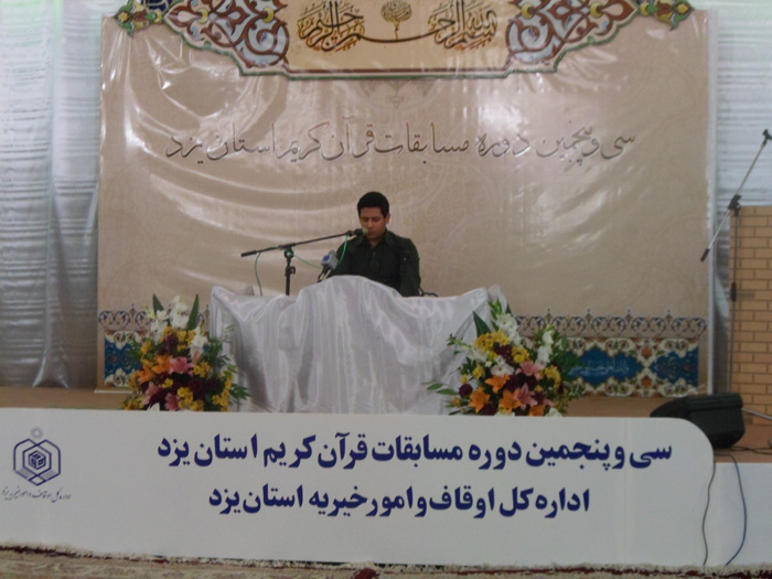 پرینتبه همت اداره کل اوقاف و امور خیریه استان سی و پنجمین دوره مسابقات قرآن کریم استان یزد در رشته های حفظ ، قرائت و ترتیل قرآن کریم با حضور متسابقین برادر شهرستان های صدوق، تفت، میبد و مهریز در آستان مقدس امامزاده جعفر (ع) یزد برگزار شد.