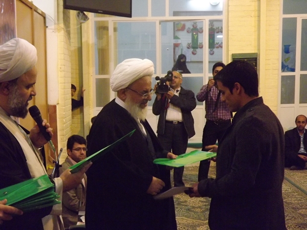 در پایان مراسم تعدادی از حافظان قرآن موسسه که در آزمونهای اداره فرهنگ و ارشاد اسلامی حائز رتبه های برتر شده بودند جوایز خود را از دست حضرت آیت الله ناصری دریافت کردند.