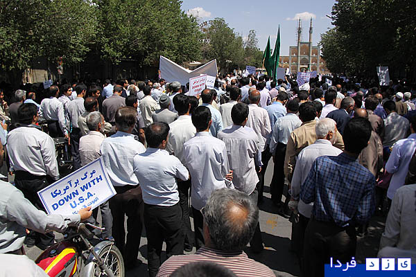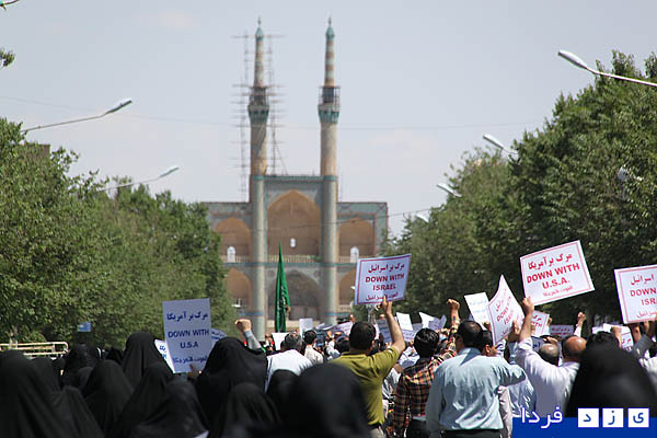 گزارش تصویری؛ تجمع اعتراض آمیز مردم دارالعباده یزد نسبت به هتک حرمت صحابی بزرگ پیامبر(ص)در سوریه