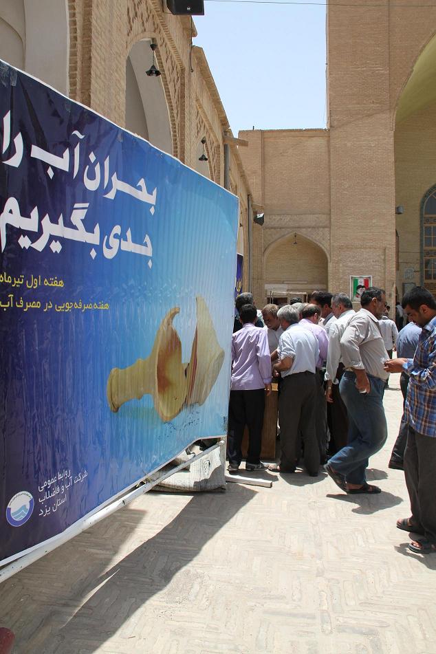 به مناسبت هفته صرفه جويي در مصرف آب در نماز جمعه اين هفته شهر يزد ، شركت آب و فاضلاب با توزيع بيش از چهار هزار بروشور در بين نمازگزاران آنها را با روشهاي صرفه جويي در مصرف آب آشنا نمود.