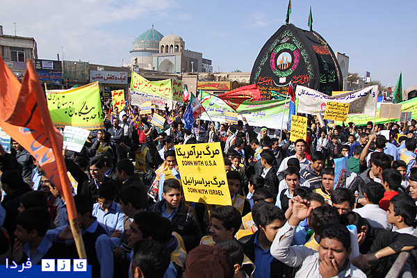 به مناسبت فرارسیدن یوم الله ۱۳ آبان راهپیمایی و تجمع دانشجویان، دانش آموزان و اقشار مختلف مردم در میدان شهداء (امیرچقماق) یزد برگزار شد.