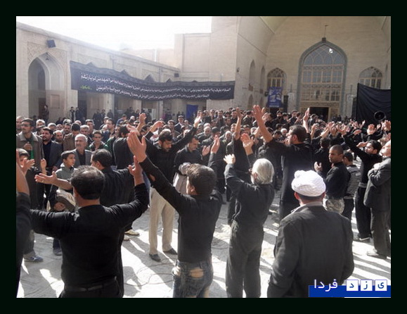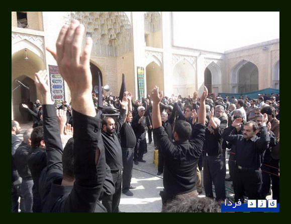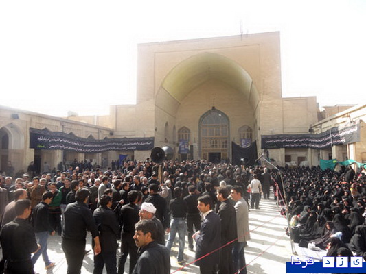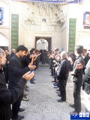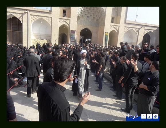 هیات های مذهبی به مناسبت روز سیزدهم محرم با حضور نماینده ولی فقیه و امام جمعه یزد در مسجد ملااسماعیل به عزاداری وسینه زنی پرداختند .
