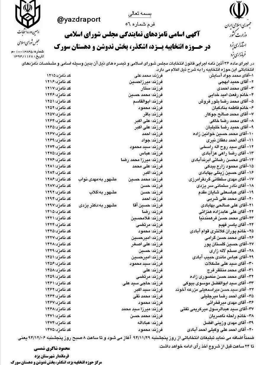اسامی کانیداهای حوزه یزد و اشکذر اعلام شد /اسامی 40 نفره کاندیداها