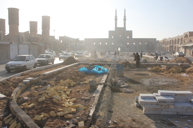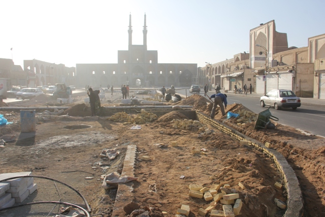 اصلاح محوطه و اجرای آبنما در میدان امیر چقماق از سوی شهرداری یزد