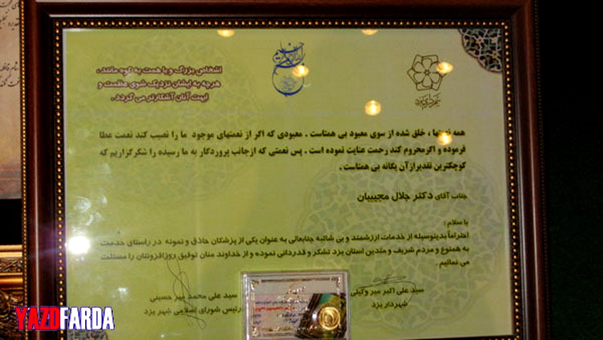 گزارش تصویری یزدفردا از مراسم تقدیر از دکترمجیبیان به عنوان شخصیت برگزیده استانی کانون یزدی تباران (9)