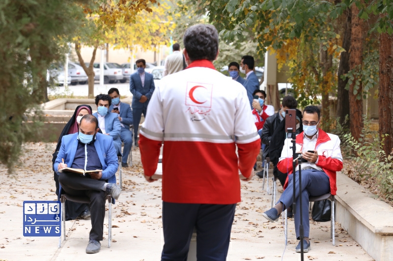 سلسله نشستهای خبری ستاد پیشگیری و مقابله با کرونا استان چهارشنبه بیست و یکم آبان ماه با حضور دکتر محسن حرازی زاده مدیر عامل جمعیت هلال احمر استان و جمعی از اصحاب رسانه در محوطه باز استانداری یزد برگزار شد.