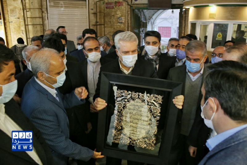 عصر امروز مونسان وزیر میراث فرهنگی، گردشگری و صنایع دستی با همراهی طالبی استاندار و جوکار نماینده یزد و اشکذر در مجلس شورای اسلامی جمعی از مسئولین از بازار قدیمی یزد( زرگرها) بازدید کردند. در حاشیه این نشست لوح یادبودی توسط بازاریان به وزیر اهدا گردید.