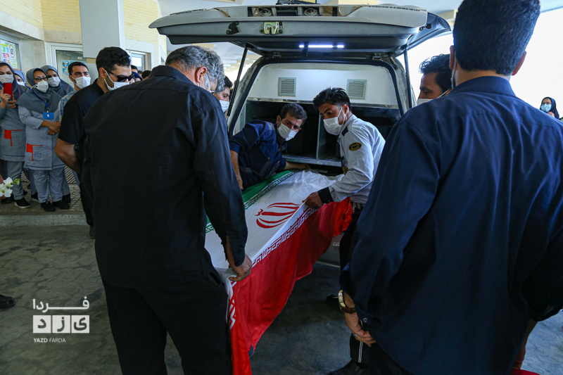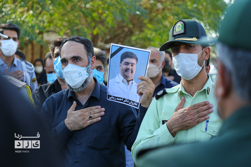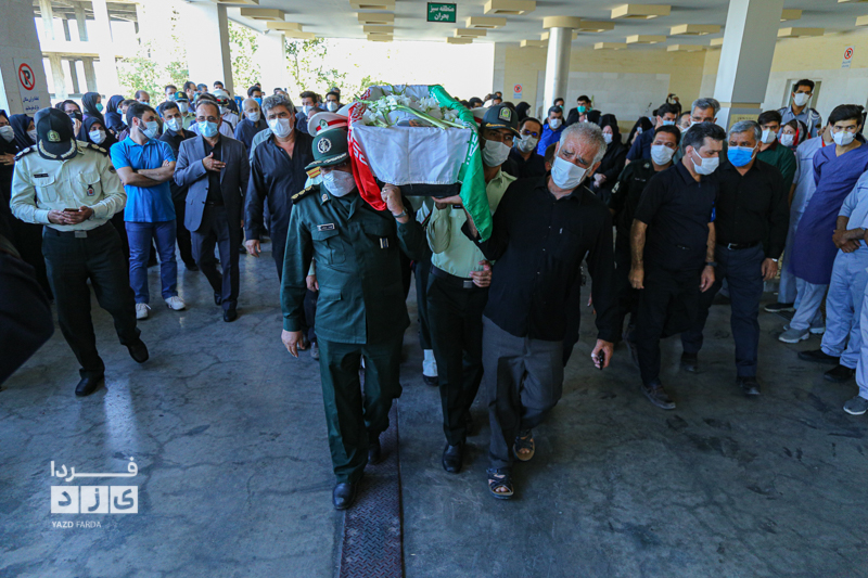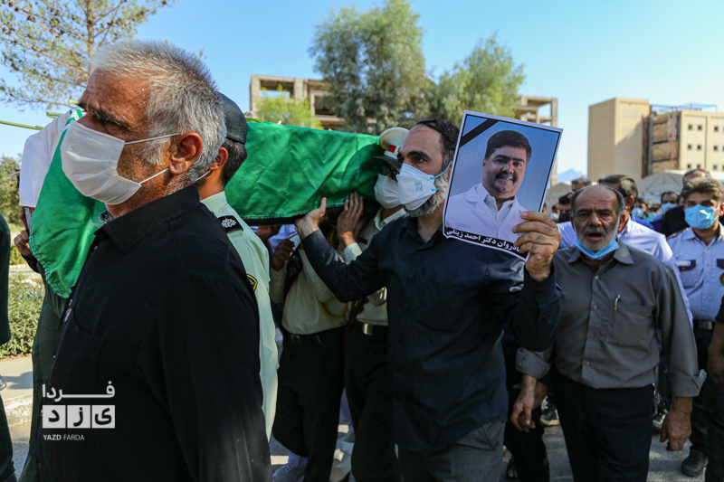 دکتر احمد زینلی قطرم، متخصص طب فیزیکی و توانبخشی بیمارستان شهید صدوقی یزد که در امر دفاع از سلامت عمومی و مقابله با کرونا، به این ویروس منحوس مبتلا و به شهادت رسید و عصر امروز پیکیر پاکش با بدرقه کادر درمان و جمعی از مسئولین از بیمارستان شهید صدوقی به سمت گلزار شهدای خلدبرین تشییع شد.