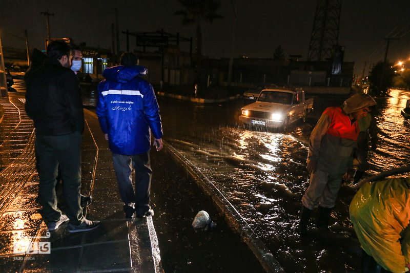 یزدفردا/ حضور شبانه حمید رضا رحیمدل سرپرست معاونت خدمات و محیط زیست شهری به همراه حامد سلطانی سرپرست مدیریت ارتباطات و امور بین الملل و همچنین نیروی های خدماتی جهت بررسی وضعیت و رفع معظل وران آب ها و بازدید از کانال های هدایت آب و دستور پاکسازی دریچه چاهای جذبی سطح شهر یزد.