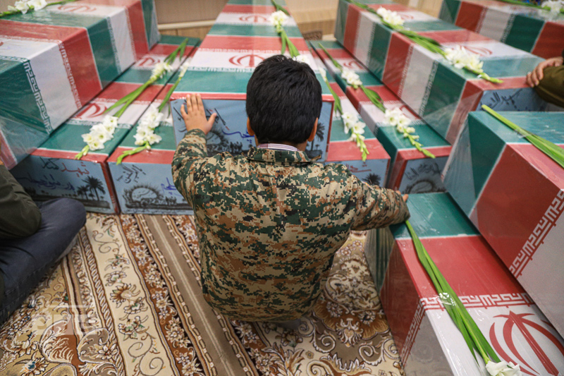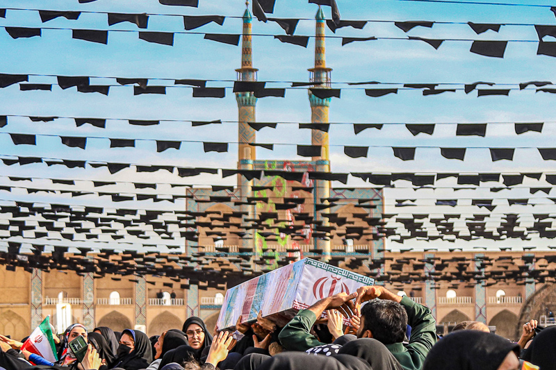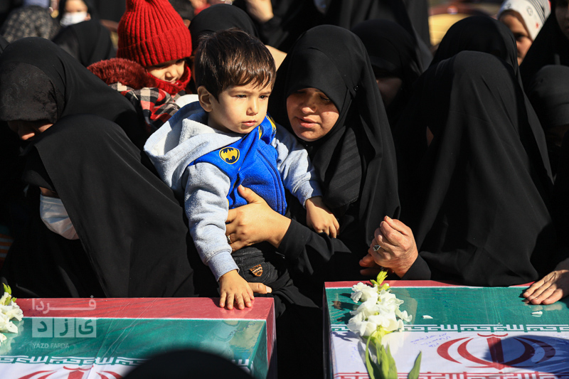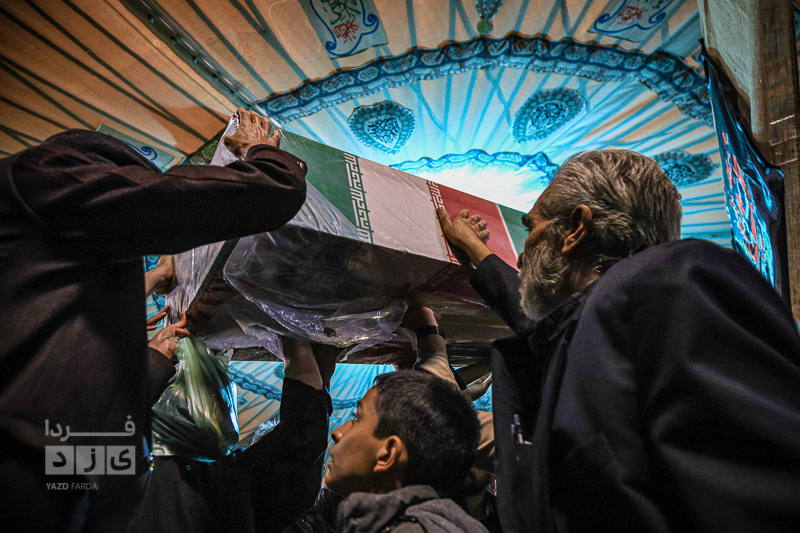 تشییع پیکر مطهر 15 شهید تازه تفحص شده بر روی دستان مردم یزد