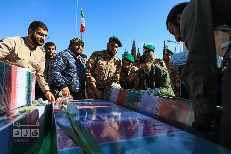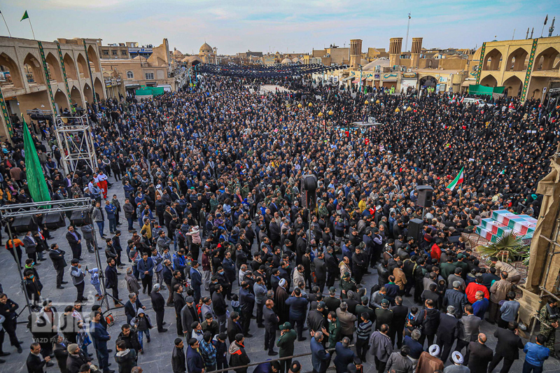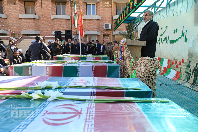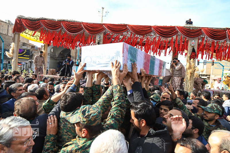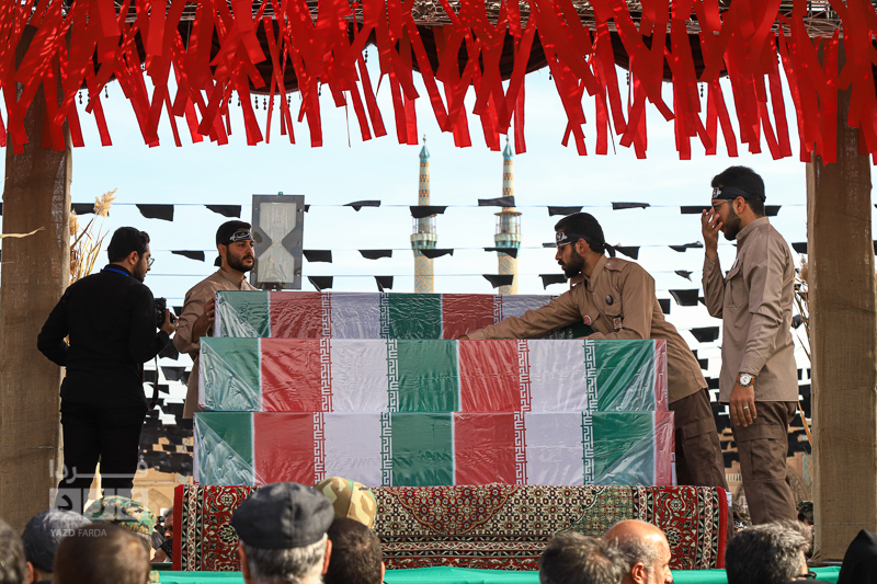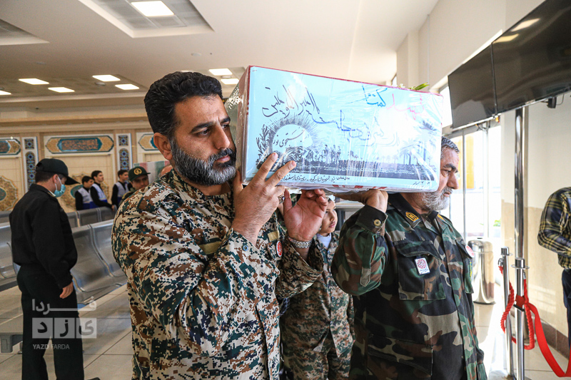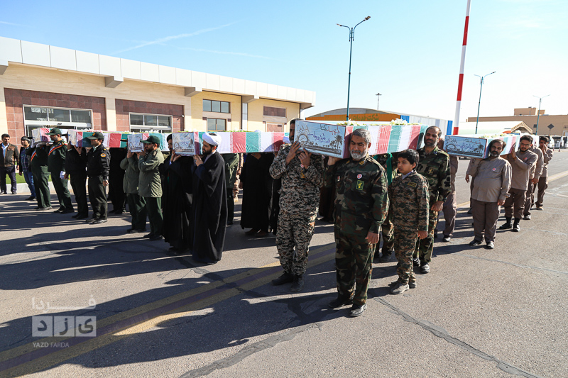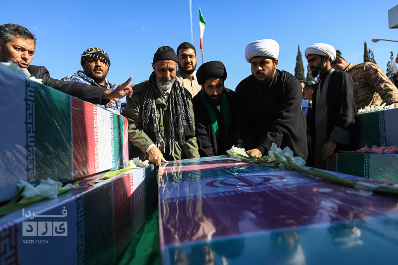 پیکر مطهر 15 شهید گمنام تازه تفحص شده بر دستان مردم دارالعباده یزد از فرودگاه تا میدان امیرچقماق تشییع شد.