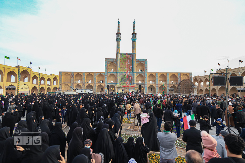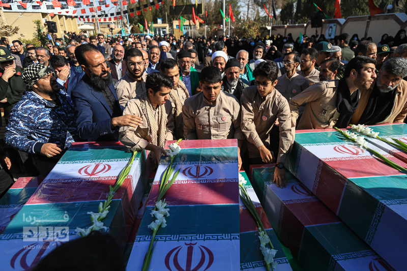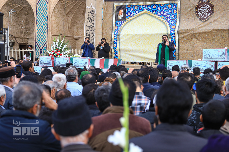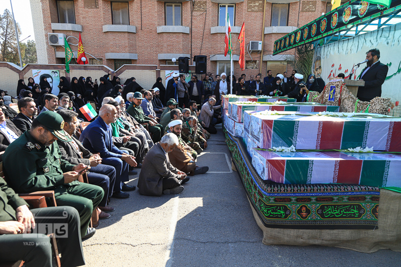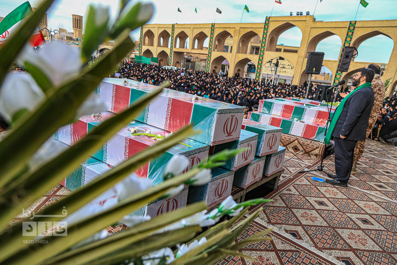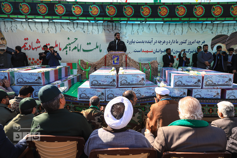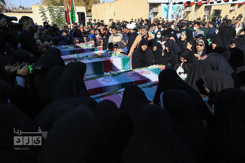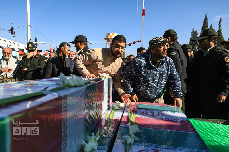 پیکر مطهر 15 شهید گمنام تازه تفحص شده بر دستان مردم دارالعباده یزد از فرودگاه تا میدان امیرچقماق تشییع شد.