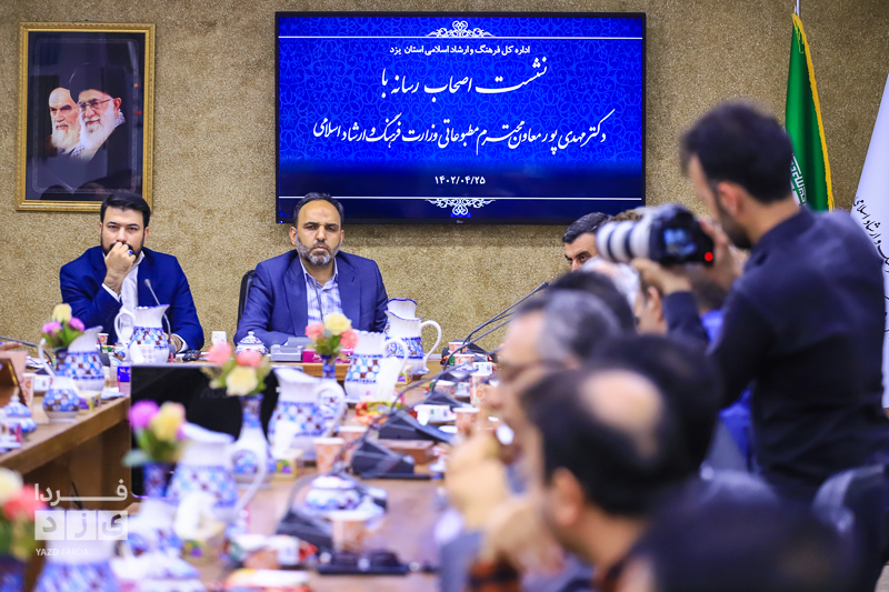 نشست خبری «فرشاد مهدی پور» معاون مطبوعاتی و اطلاع رسانی وزیر فرهنگ و ارشاد اسلامی و همچنین «احسان عابدی» مدیرکل فرهنگ و ارشاد اسلامی استان یزد امروز یکشنبه ۲۵ تیرماه با حضور اصحاب رسانه برگزار شد.